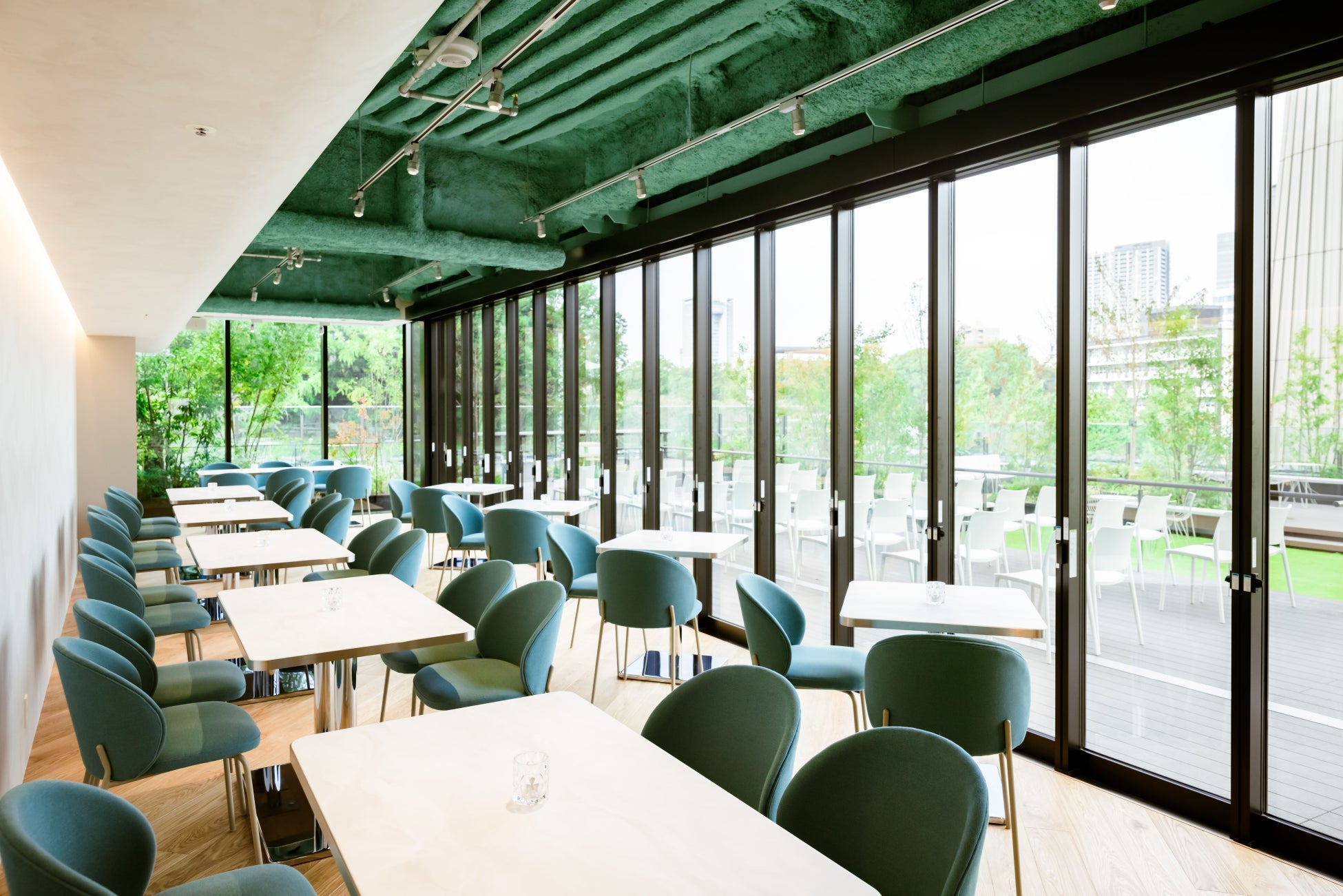 最上階の屋上庭園に隣接する「VMG CAFE 九段会館テラス」は、全面ガラス張りの解放感溢れる店内、屋上庭園に隣接するテラス席も併設され、武道館や靖国神社の鳥居、お堀などを眺め、四季折々の景色の移ろいに癒されます。