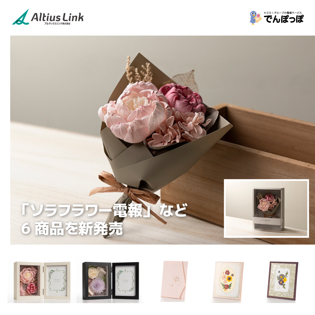 アルティウスリンク株式会社(所在地:東京都渋谷区、代表取締役社長:網野 孝、以下 アルティウスリンク)が提供する、KDDIグループの電報サービス「でんぽっぽ」※1(以下でんぽっぽ)から、でんぽっぽ初となるソラフラワー電報など6商品(祝電4商品・弔電2商品)を2024年12月10日(火)より販売開始します。