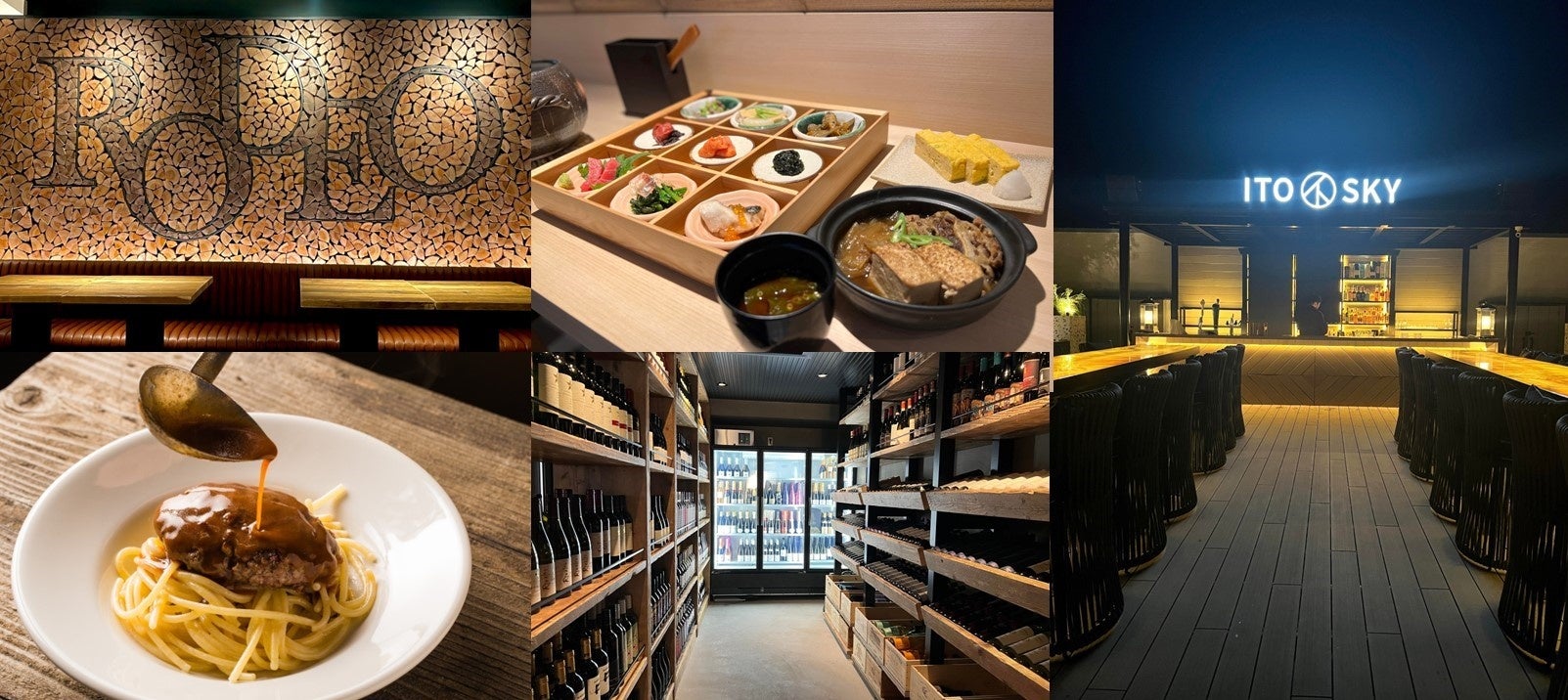 世界各国から取り寄せたワイン3000本が圧巻のワインセラーやイタリアン、和食、タイ料理、韓国料理などの8業態が並ぶフードホール(1階)と、総面積544㎡と日本最大級の広さを誇るルーフトップ「ITO SKY」(計9業態)からなる飲食施設です。全店舗、福岡初出店で、ミシュラン星獲得店舗や東京の有名店など一流と言われるレストランから選ばれている糸島産の野菜・魚介・肉の他、地元福岡のブランド牛「博多牛」など、地域のものを中心に素材のうま味を引き出した料理を提供いたします。