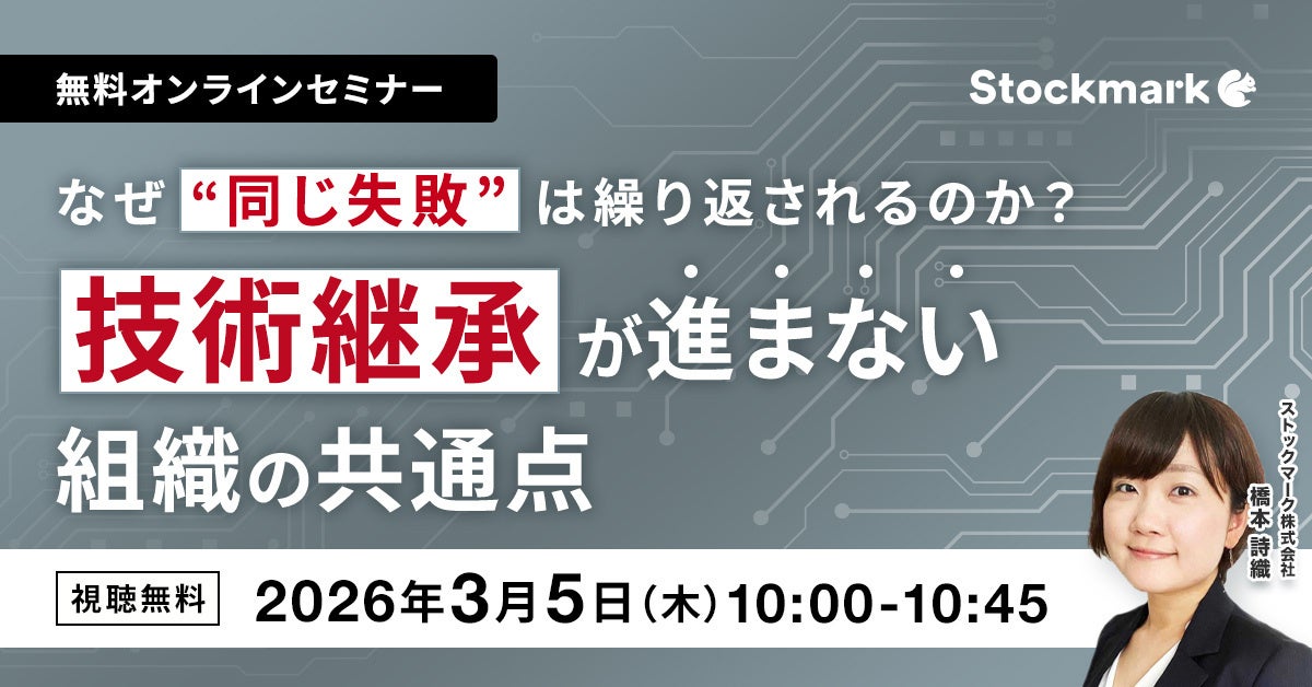 【3月5日(木) 無料セミナー】『なぜ同じ失敗は繰り返されるのか?技術継承が進まない組織の共通点』(ストックマーク主催)