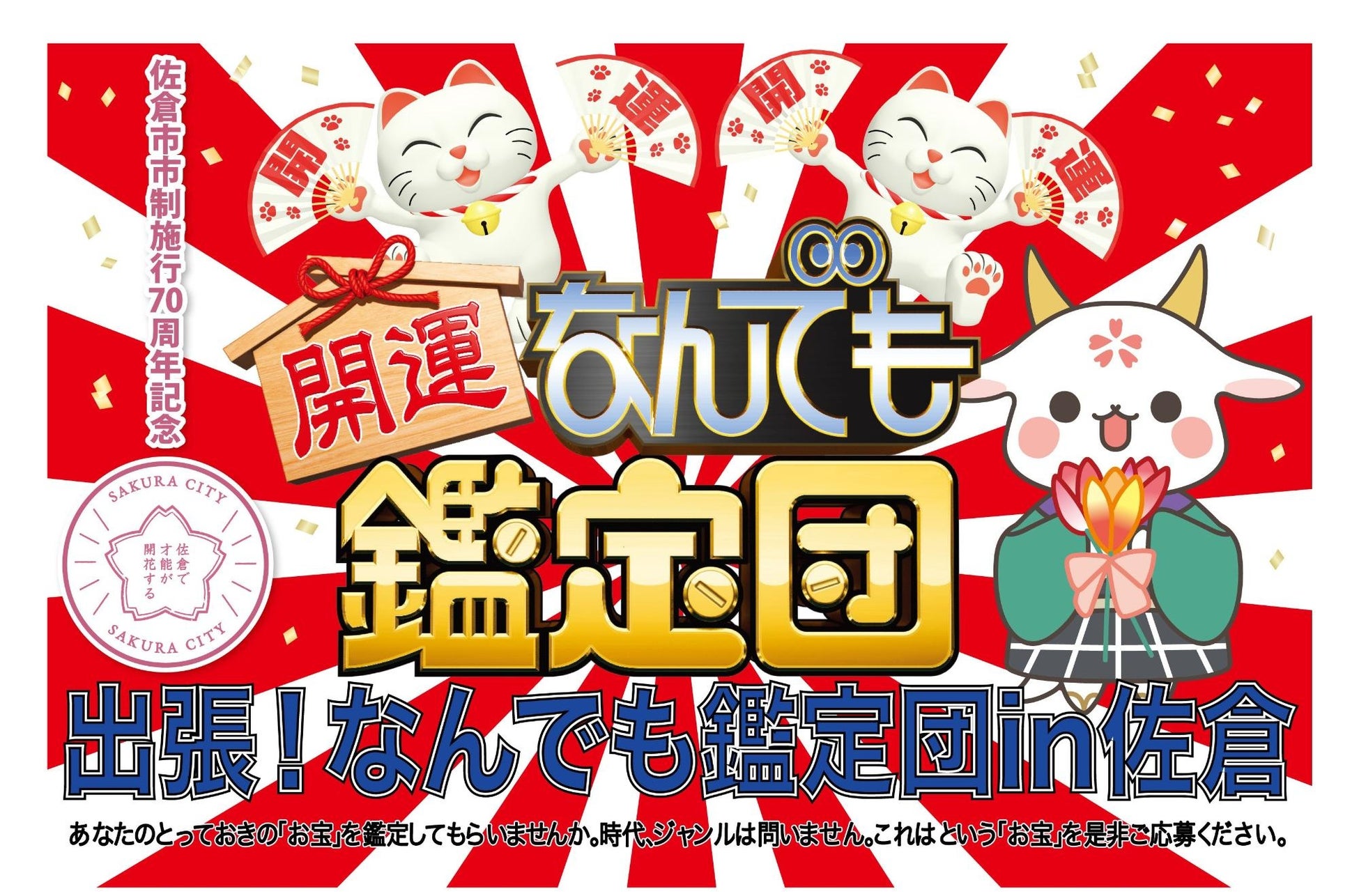 2025年3月23日(日)に佐倉ハーモニーホールにて「出張!なんでも鑑定団in佐倉」の公開収録を行います。鑑定してもらいたいお宝を大募集中です。奮ってご応募ください!