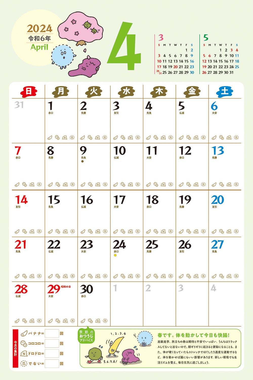 うんこ博士として便育を広める榊原千秋さんによる、毎月のおつうじアドバイスも必読。身近なイベントや季節ならではの現象、具体的な食べ物など実践しやすいことが満載です。