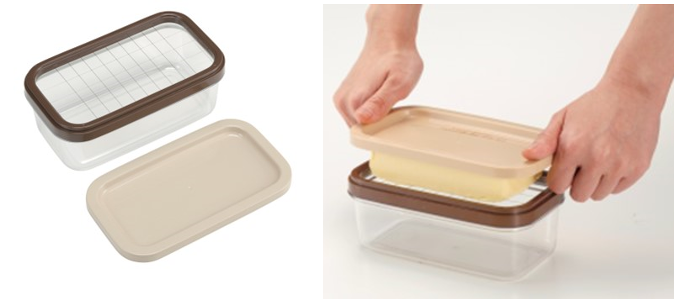 バターを切り分け、そのまま保存ができるケース。ぎゅっと押すだけでバターを簡単にカットすることができます。5g単位にカットでき、計量に便利です。