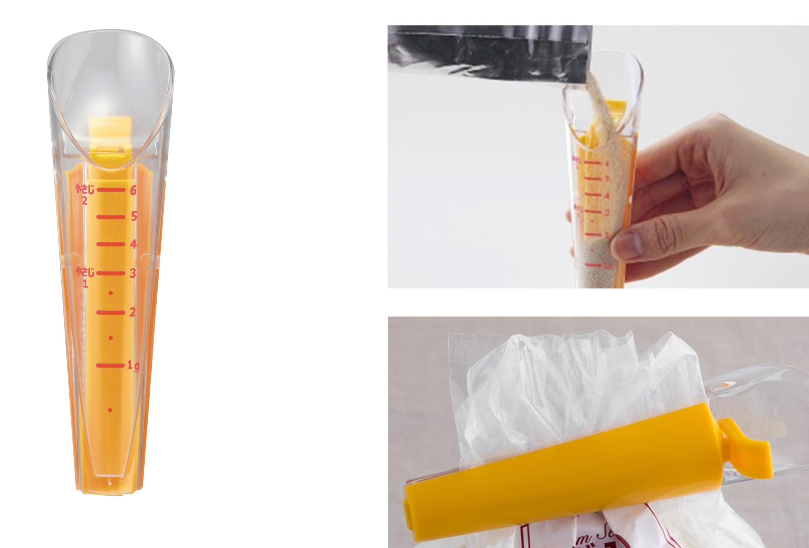 価格:500円(税抜) / 550円(税込)ドライイーストの計量にぴったりな微量スケール。袋の口をはさんで保存できるクリップ付きで、メジャーとクリップはスライドして分解可能な構造です。
