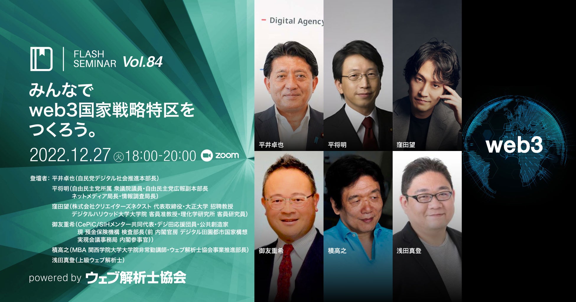 2022/12/27(火)18〜20時 【Flashセミナー】Vol.84【無料】みんなでWeb3.0国家戦略特区をつくろう。