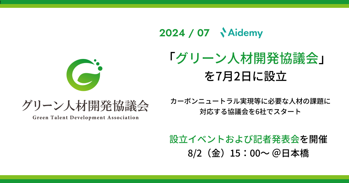 なお、団体設立を記念し、「グリーン人材開発協議会設立イベント」を2024年8月2日にオンラインにて開催いたします。