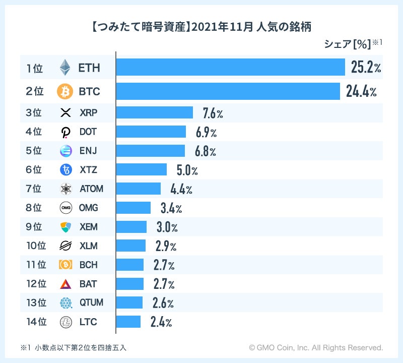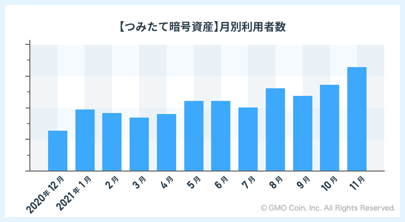 暗号資産取引のGMOコイン:つみたて暗号資産の利用者数の推移と人気の銘柄