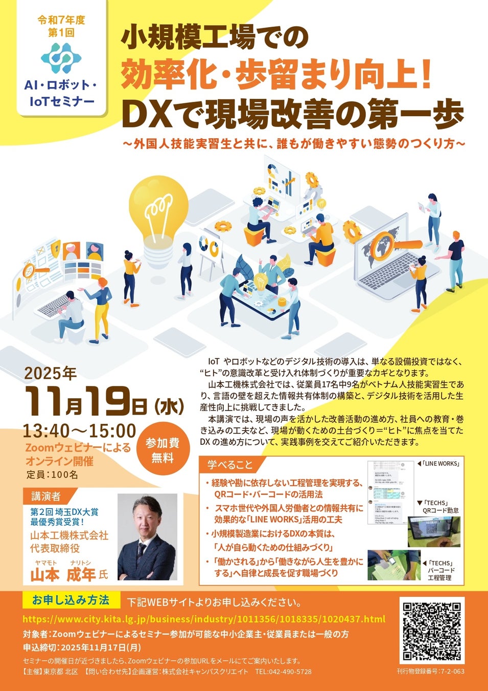 東京都北区では、2025年11月19日(水)、ZoomウェビナーにてAI・ロボット・IoTセミナー