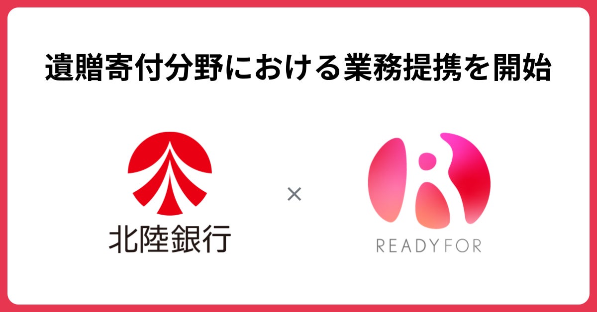 READYFOR、北陸銀行と「遺贈寄付」分野における業務提携を開始