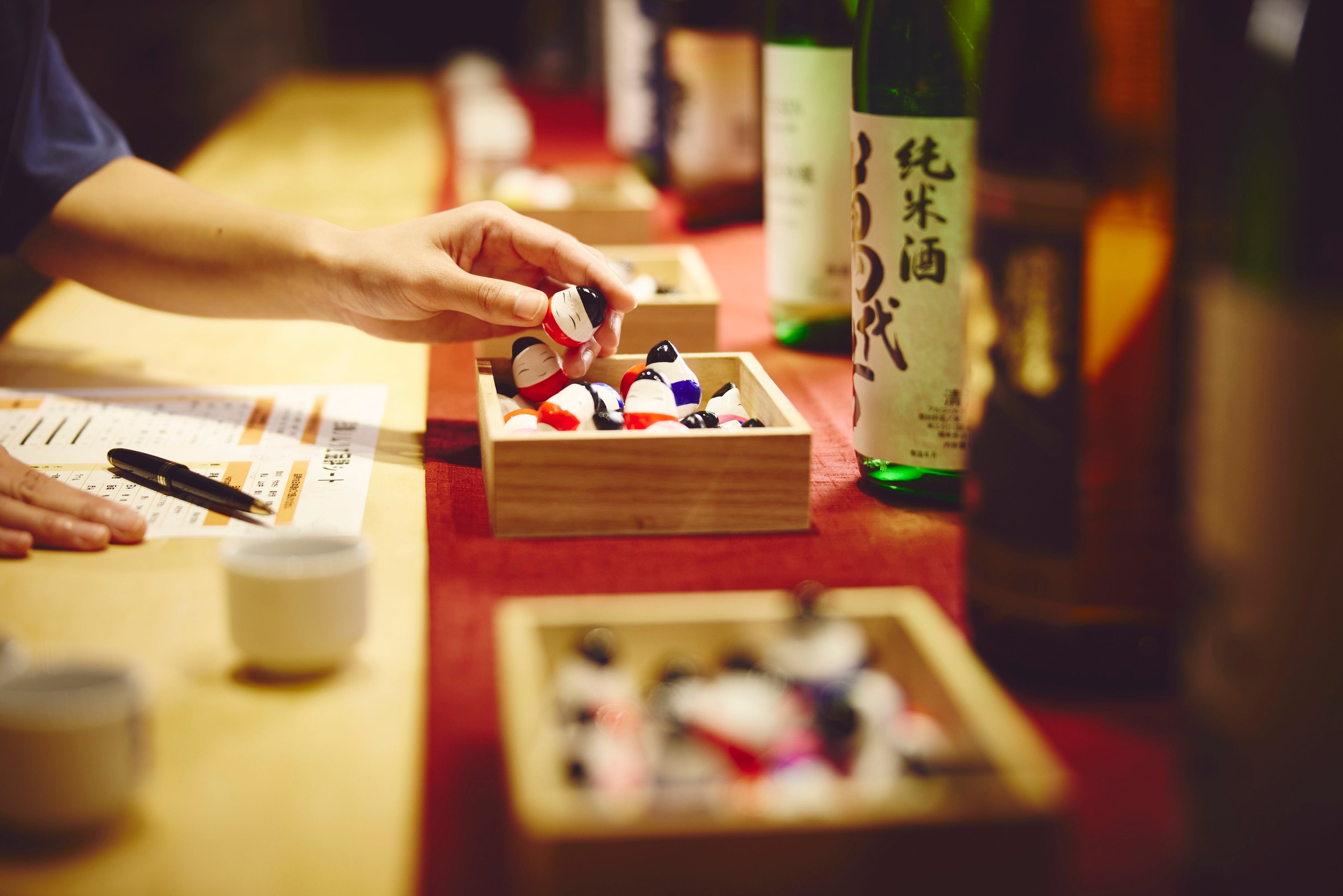 イベント期間中、当館オリジナルの酒器をゲットできる「酒器ガチャ」が登場。日本酒は、飲むときに使う酒器の素材や形によって、味わいの変化をもたらします。酒器ガチャのメインは、赤べこの絵柄が描かれた陶器のおちょこです。シークレットには、陶器以外の形や素材の酒器もあり、何が当たるかはお楽しみです。カプセルには、それぞれの酒器に合った日本酒の楽しみ方が書かれた指南書も入っており、マイ酒器を手に、より深く日本酒を楽しむことができます。また、会津30蔵と酒器のお店やおつまみが買えるお店などが書かれた「酒蔵ぶらりんマップ」で、翌日の観光も日本酒尽くしにするのがおすすめです。