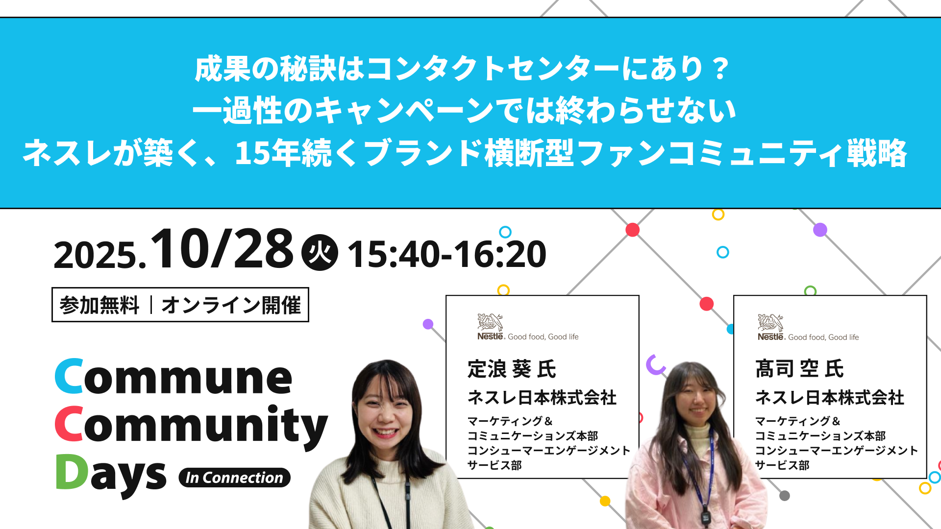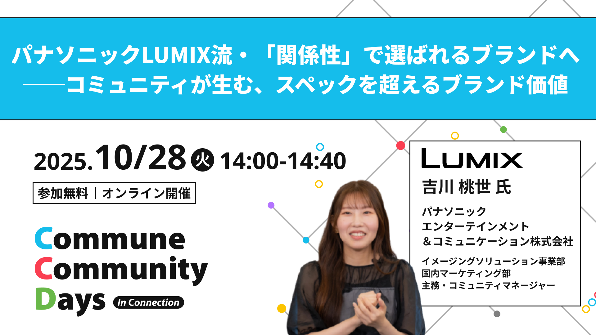 相互交流で信頼を育む「Commune」を提供するコミューン株式会社は、オンラインイベント「Commune Community Days In Connection〜つながりを、ちからに。〜」(以下、CCDays)を2025年10月28日(火)に開催することをお知らせします。各業界のキーパーソンを招聘し、完全無料で開催します。