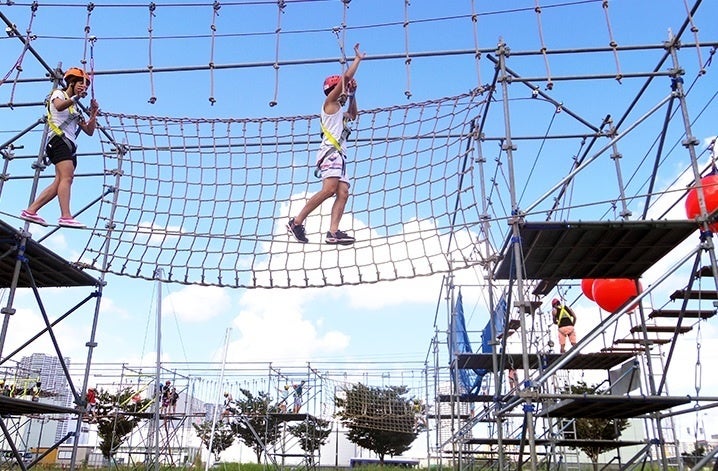 高さ7m超えスリル満点!7つの空中アスレチックに挑戦しよう♪