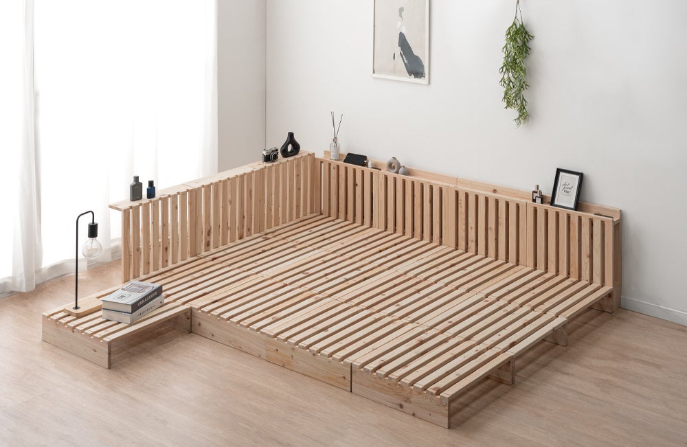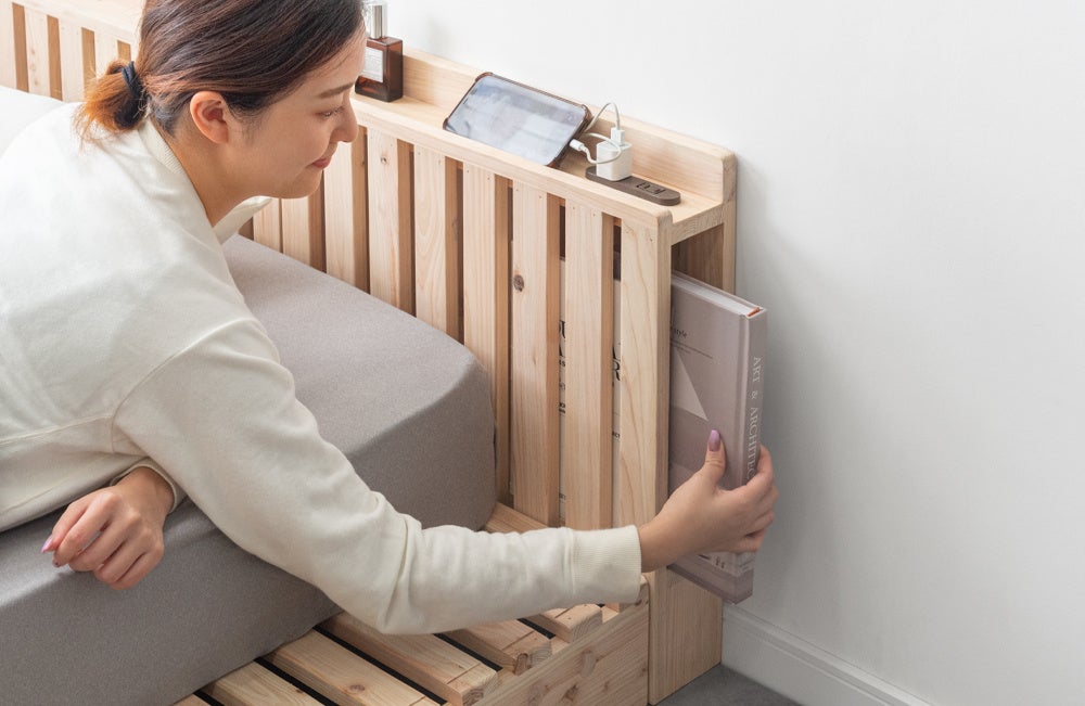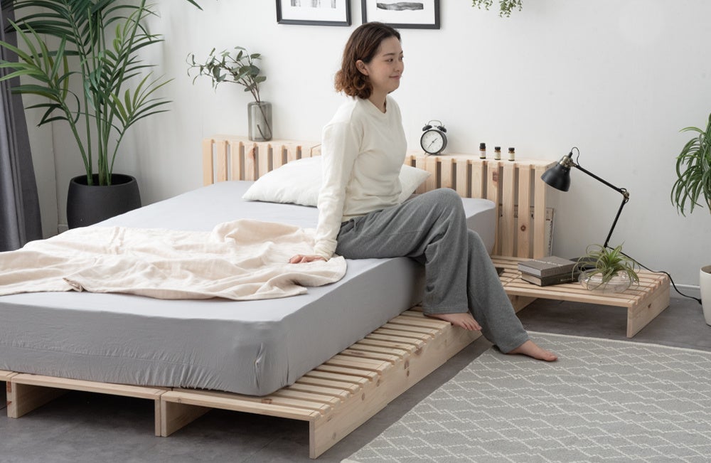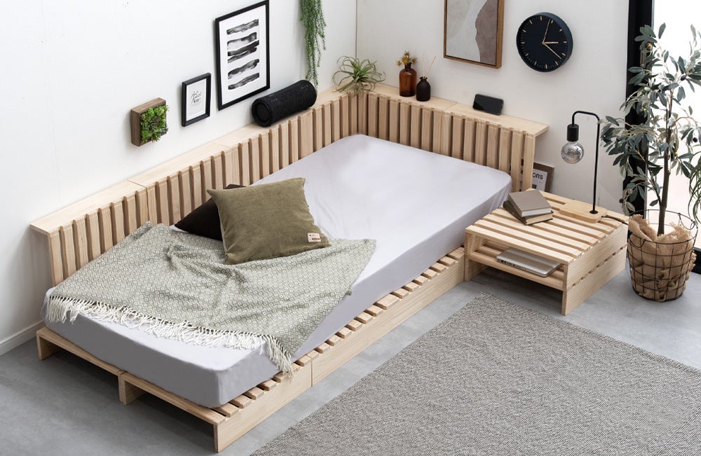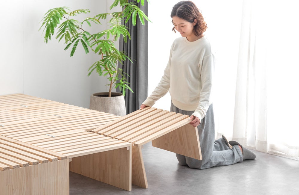 自在なアレンジで人気の“パレットベッド”にひのきモデルが登場!木の香りに包まれて、配置を楽しむマルチレイアウトベッド