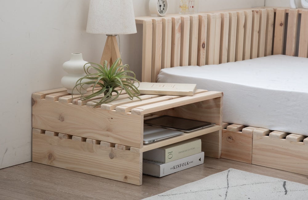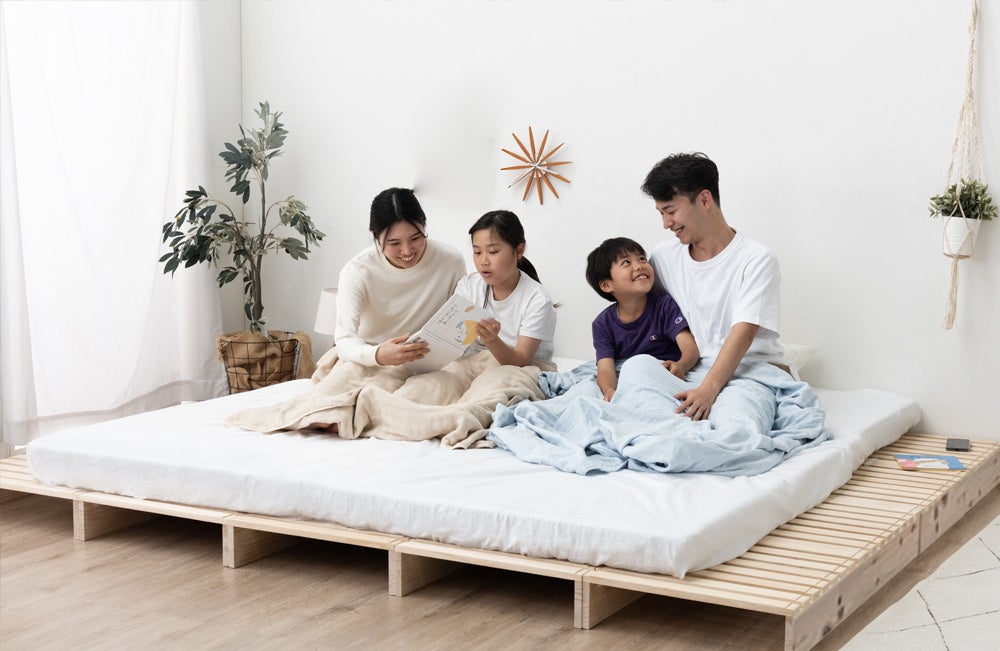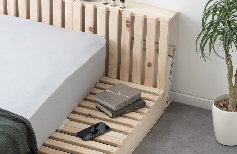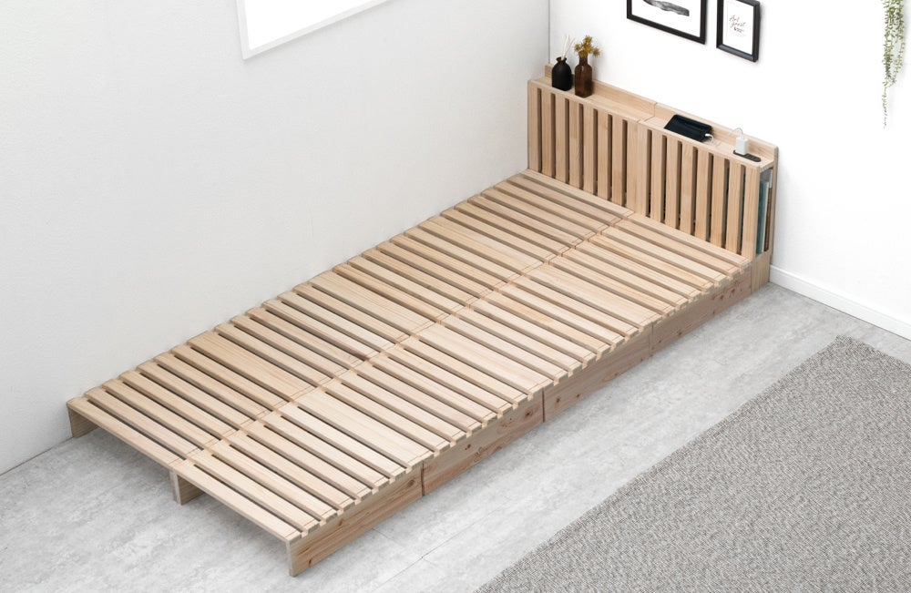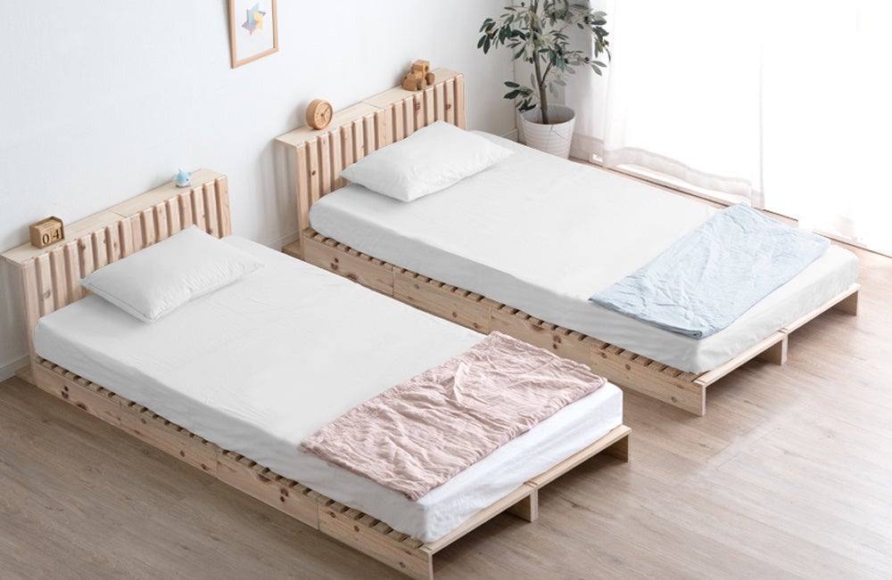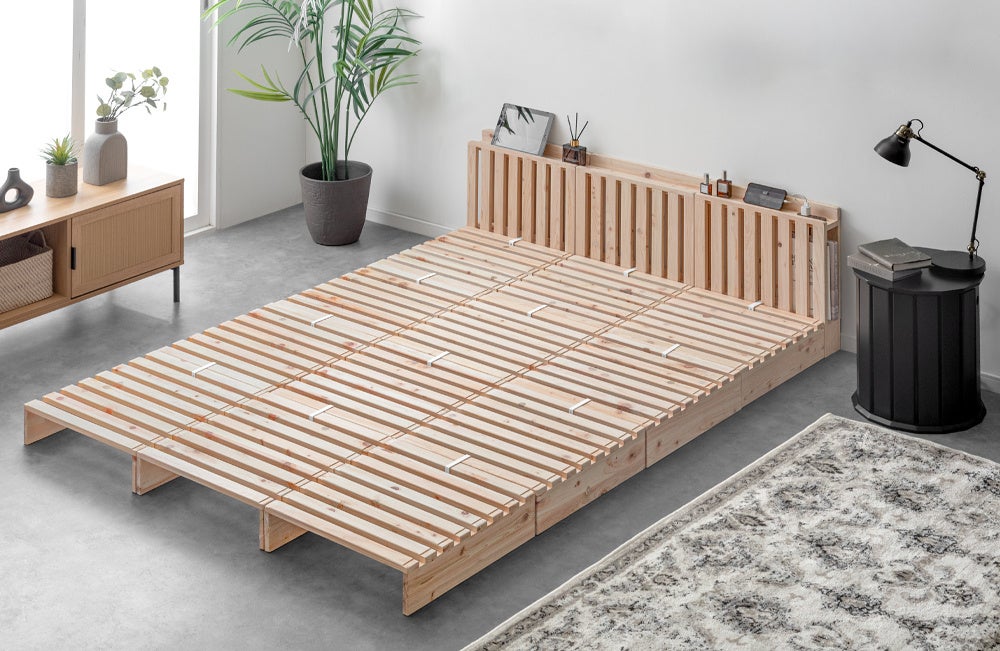 自在なアレンジで人気の“パレットベッド”にひのきモデルが登場!木の香りに包まれて、配置を楽しむマルチレイアウトベッド