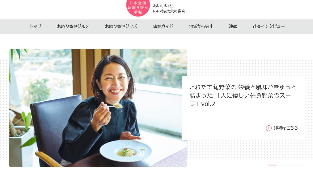 フジサンケイグループの扶桑社より発刊されていたムック本『日本全国お取り寄せ手帖』をWEB化したメディア。お取り寄せ商品を中心に、老舗企業から、急成長中の企業まで、述べ1,500社の商品を取材・紹介している。