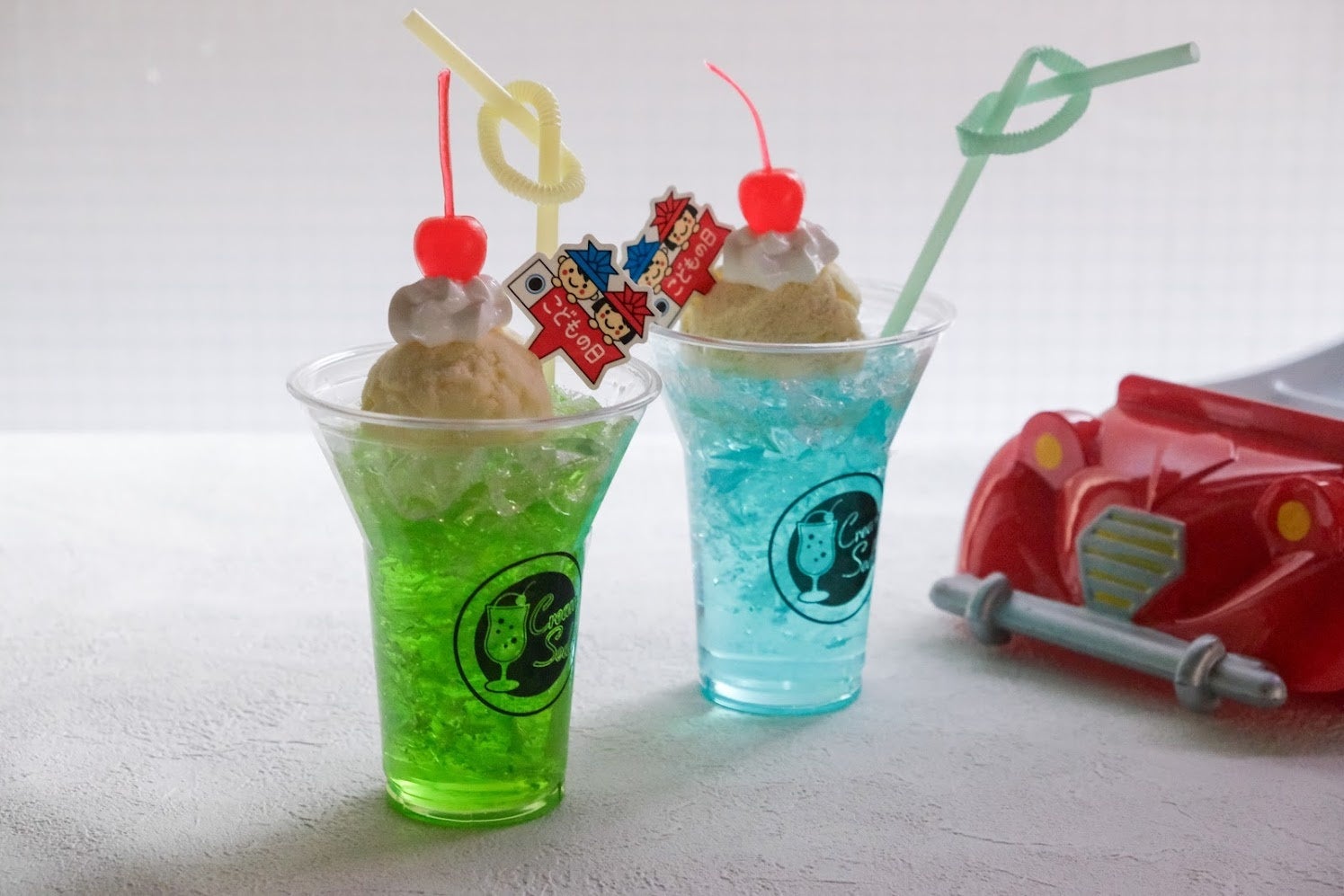 ナノブロック(R)でレトロかわいいクリームソーダを作ろう!メロン味・カシス味もしくはレモン味・ブルーハワイ味の2種セットになったクリームソーダのうち、1つをその場で作り、ケースに入れてお持ち帰りできます。ナノブロックの組み立てに便利なツール「ナノブロック(R)パッドmini」もついてくる限定ワークショップです。