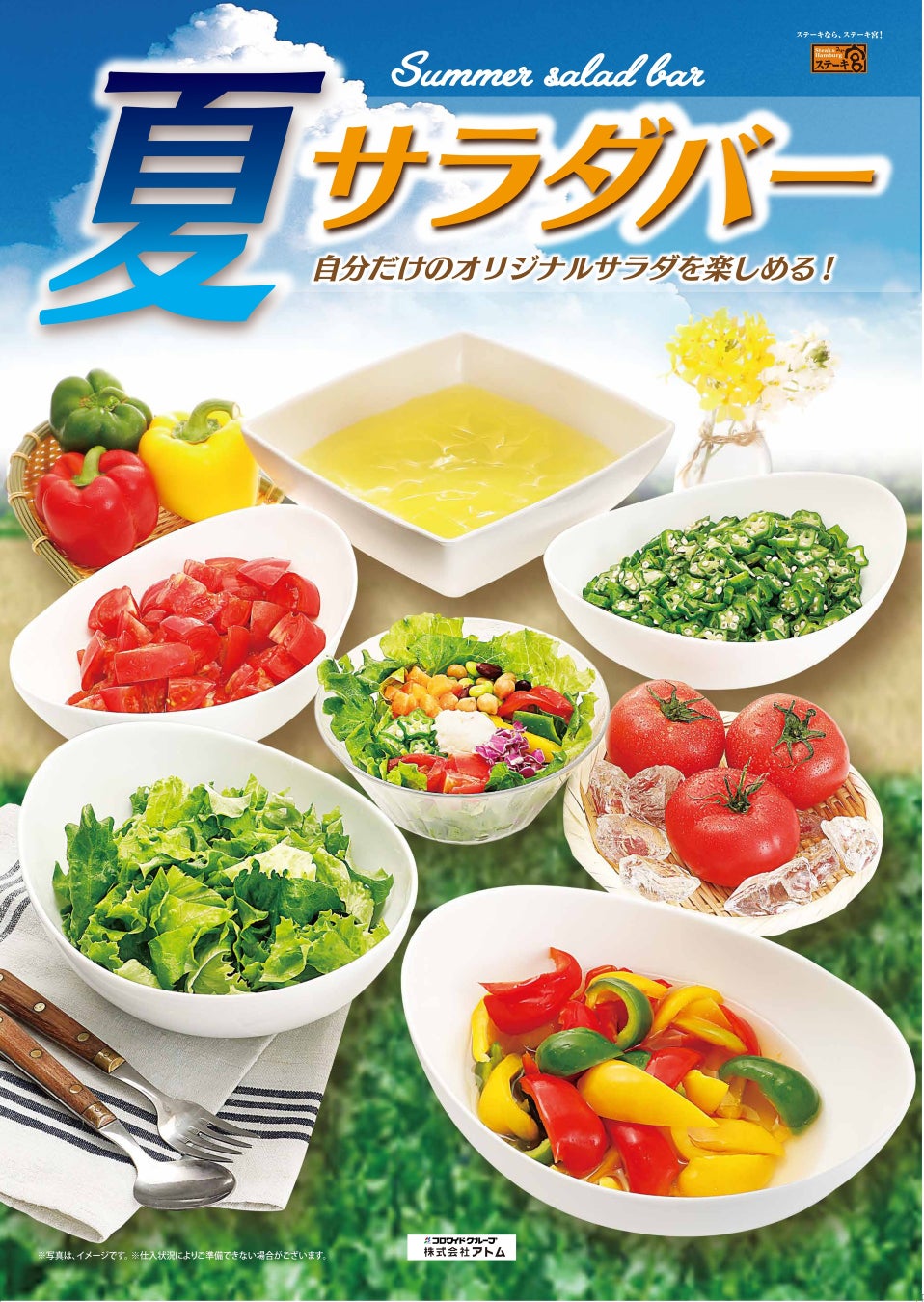 ~ステーキ宮の夏サラダバー~ 夏!定番のみずみずしいカラフルな彩り野菜を使用して、自分だけのオリジナルサラダを楽しめます!