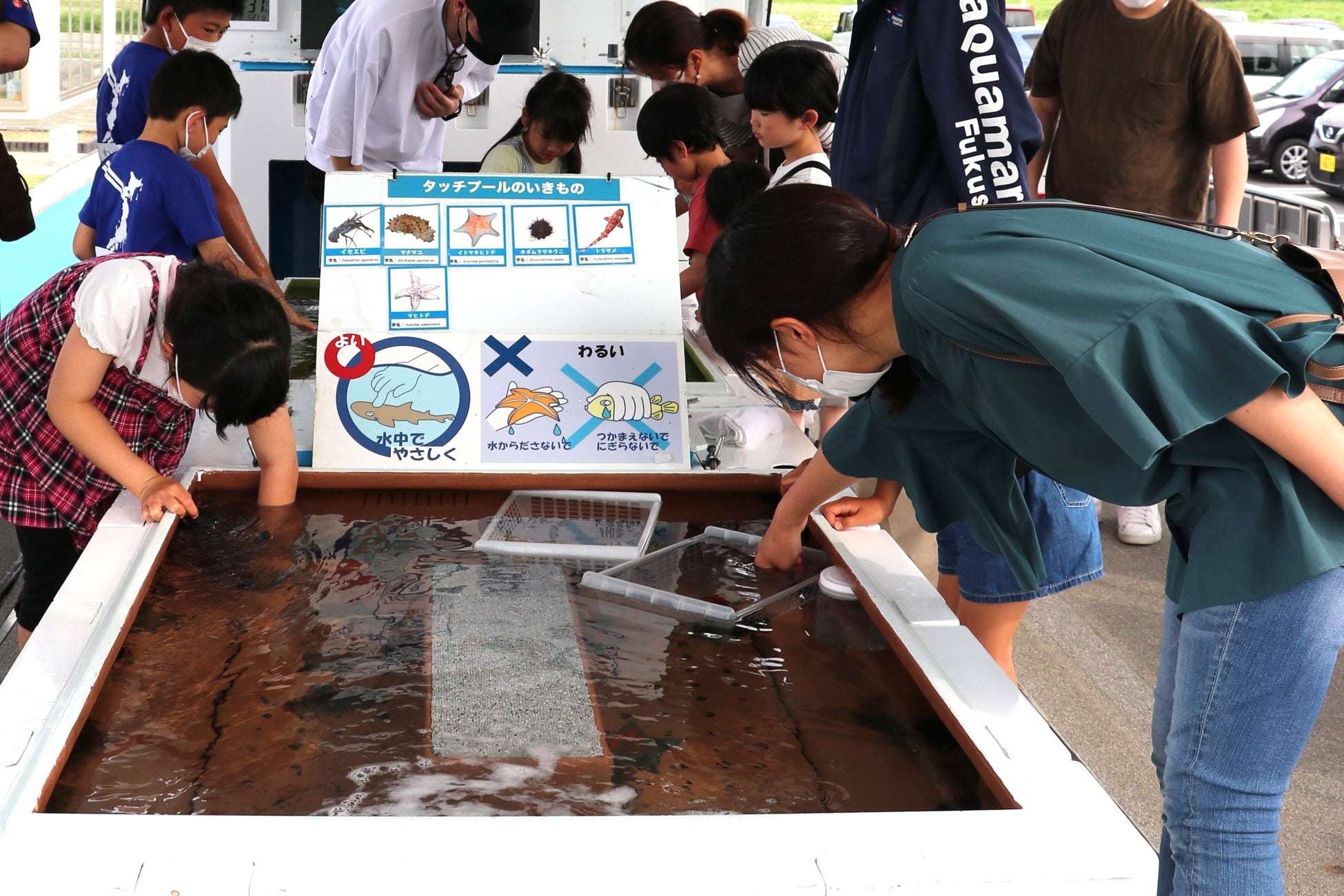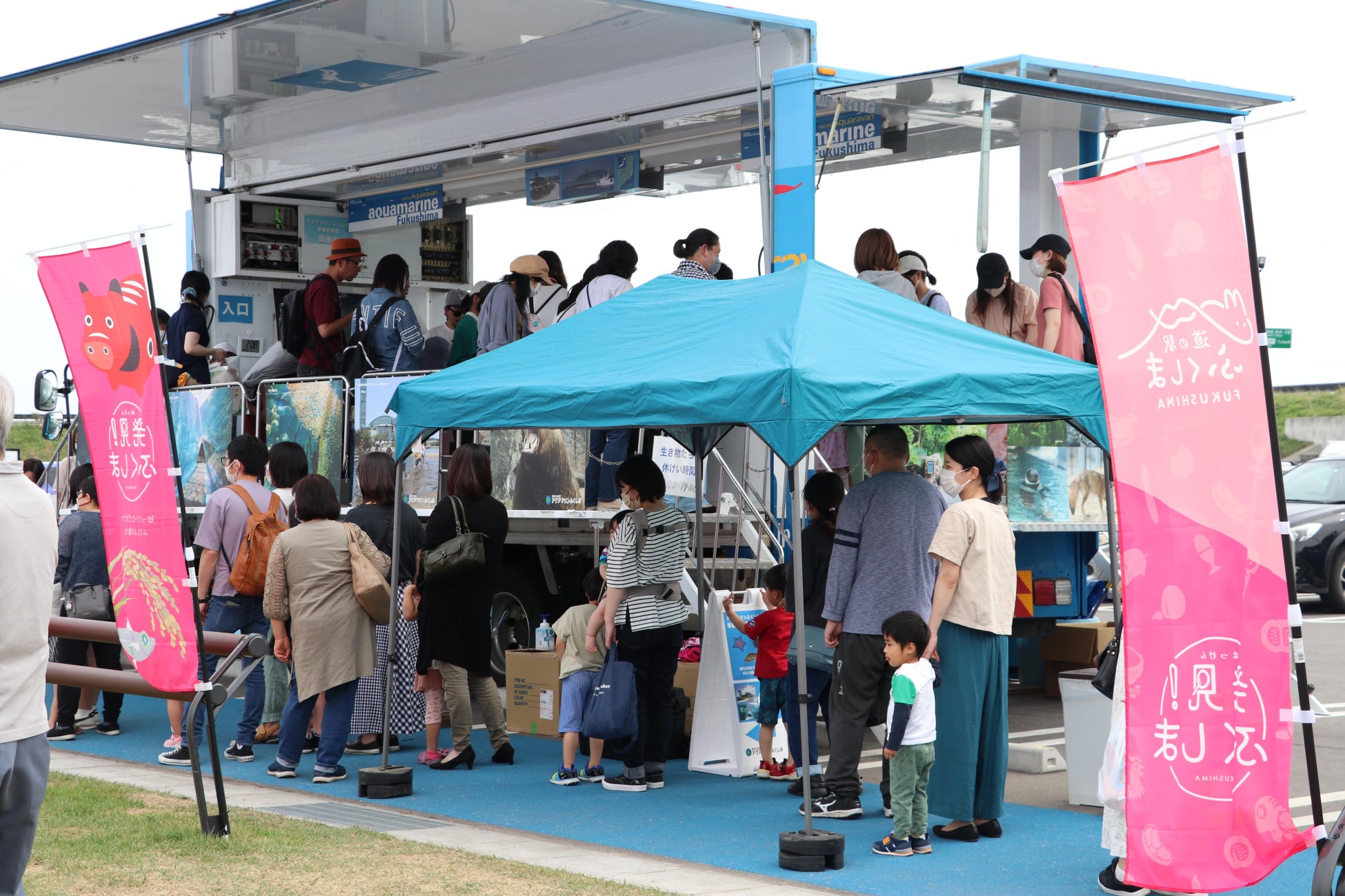 福島県いわき市の水族館「アクアマリンふくしま」から移動水族館「アクアラバン」がやってきます!魚が泳ぐ観覧水槽や、ヒトデやウニに触れられるタッチ水槽を搭載しています。
