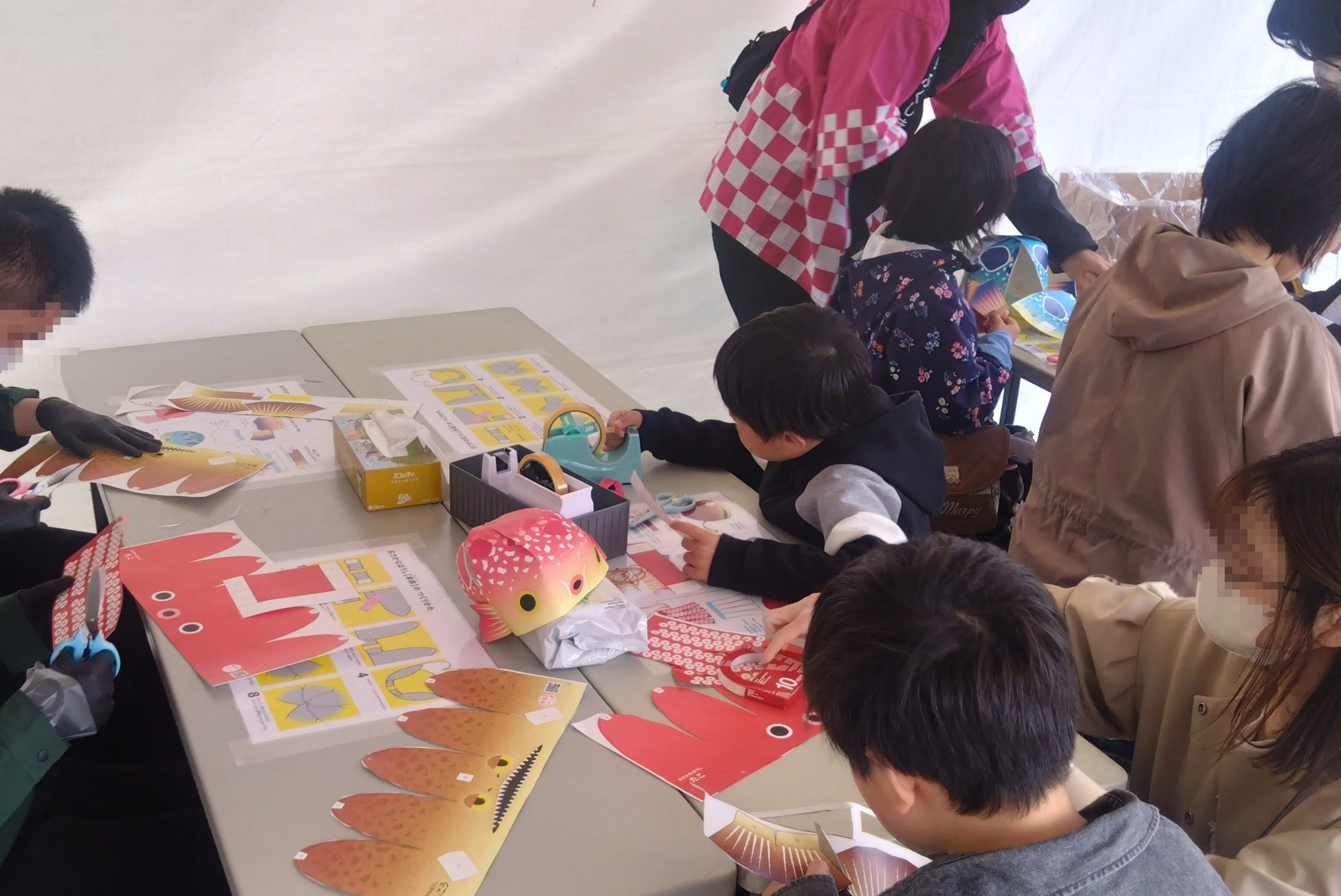 「おさかなぼうし」は簡単に作れて、頭に被ればおさかな気分で会場を回遊できます。