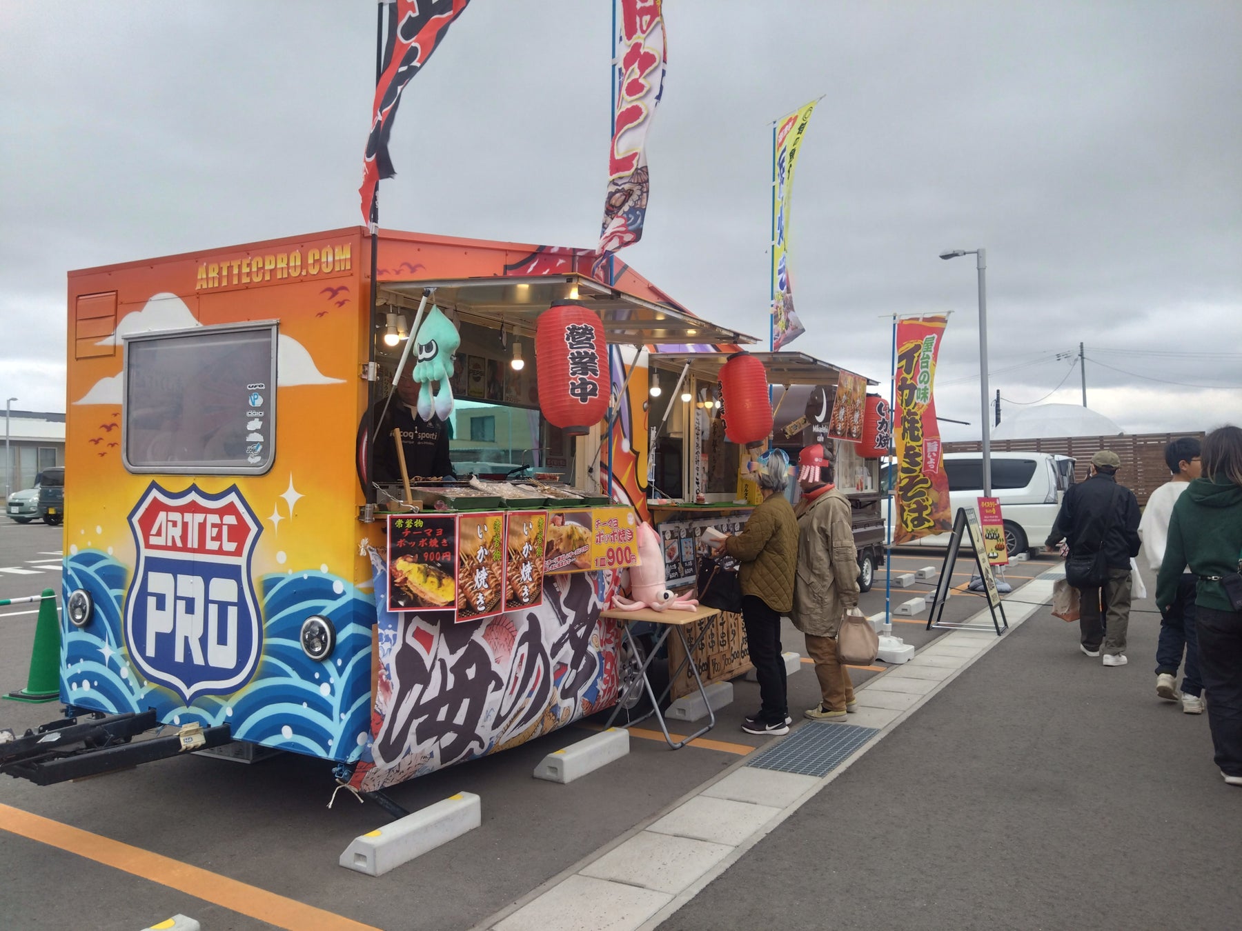 会場では、常磐ものの串焼きを使用したメニューや手軽に食べられるサツマイモのスイーツなど、福島県産食材を使用したこだわりメニューを提供するキッチンカーが出店いたします。
