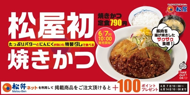 このたび松屋フーズ(本社:東京都武蔵野市、代表取締役社長:瓦葺一利)では、牛めし・カレー・定食・その他丼の「松屋」におきまして、2022年6月7日(火)午前10時より「焼きかつ」を発売いたします。