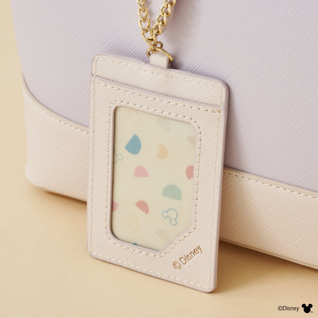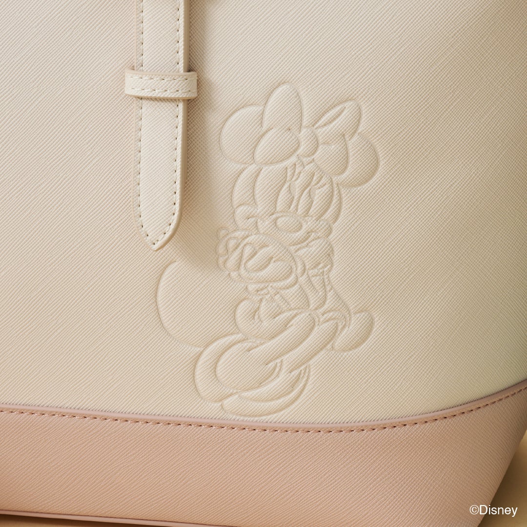 右下には、「ミニーマウス」が上品に座っているアートを型押しにしたさりげないデザインに注目。「ミニーマウス」をイメージした可愛らしくフェミニンな印象にシーズンレスでオールシーズン使いやすいデザインがポイント。