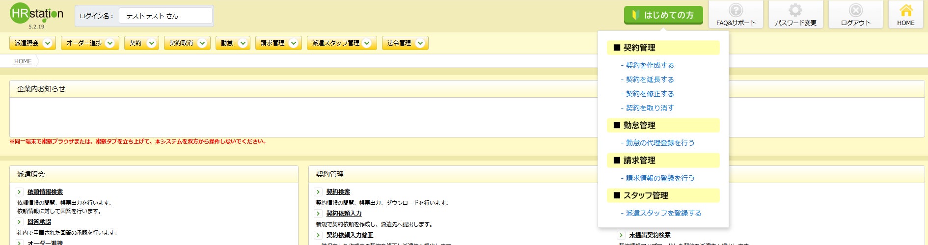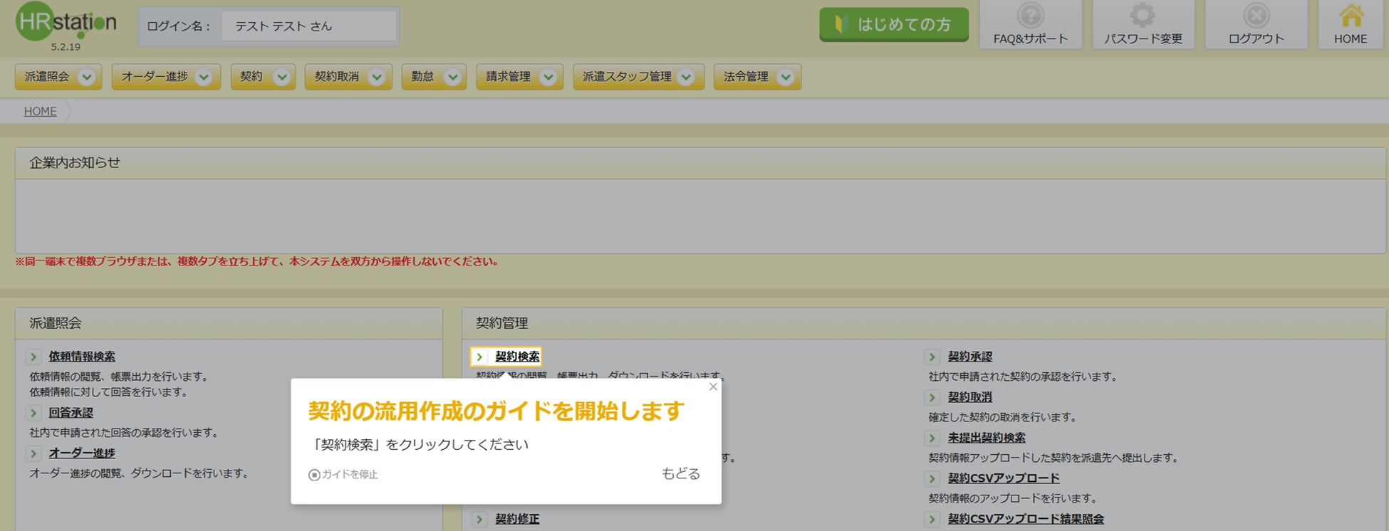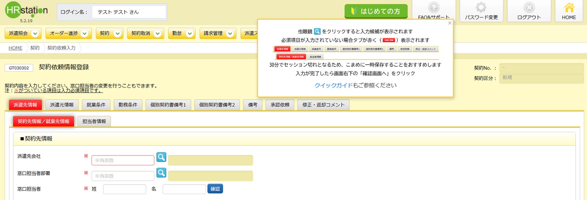 「HRstation」は、派遣労働者の受け入れや管理に必要な機能を一元化したクラウド型人材派遣管理システムです。派遣照会管理、契約管理、法定帳簿の電子保存、法令遵守支援などの機能を備え、運用コストの削減と効率化を実現しています。現在、3,000社の企業様に導入いただいており、操作性や拡張性の高さを評価いただいております。一方で、近年の派遣事業に関連する法改正に伴いシステム改修の頻度が増加し、操作の複雑化によりサポートセンターへの問い合わせも増加傾向にありました。こうした現状を踏まえ、迅速かつ柔軟にUXを改善するため「テックタッチ」を導入しました。これによりユーザーが自身のペースで操作を習得できるようになり、利便性の向上に加え、問合せ件数の削減や業務効率化、さらには顧客満足度の向上につながると期待しています。今後も、テックタッチ様と協働しながら、「HRstation」をより使いやすく、価値あるサービスへと進化させていくために、継続的な改善に取り組んでまいります。