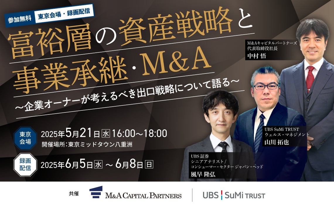 【参加無料】UBSトップアナリストとMACP代表中村が語る「富裕層の資産戦略 と事業承継・M&A」開催決定!