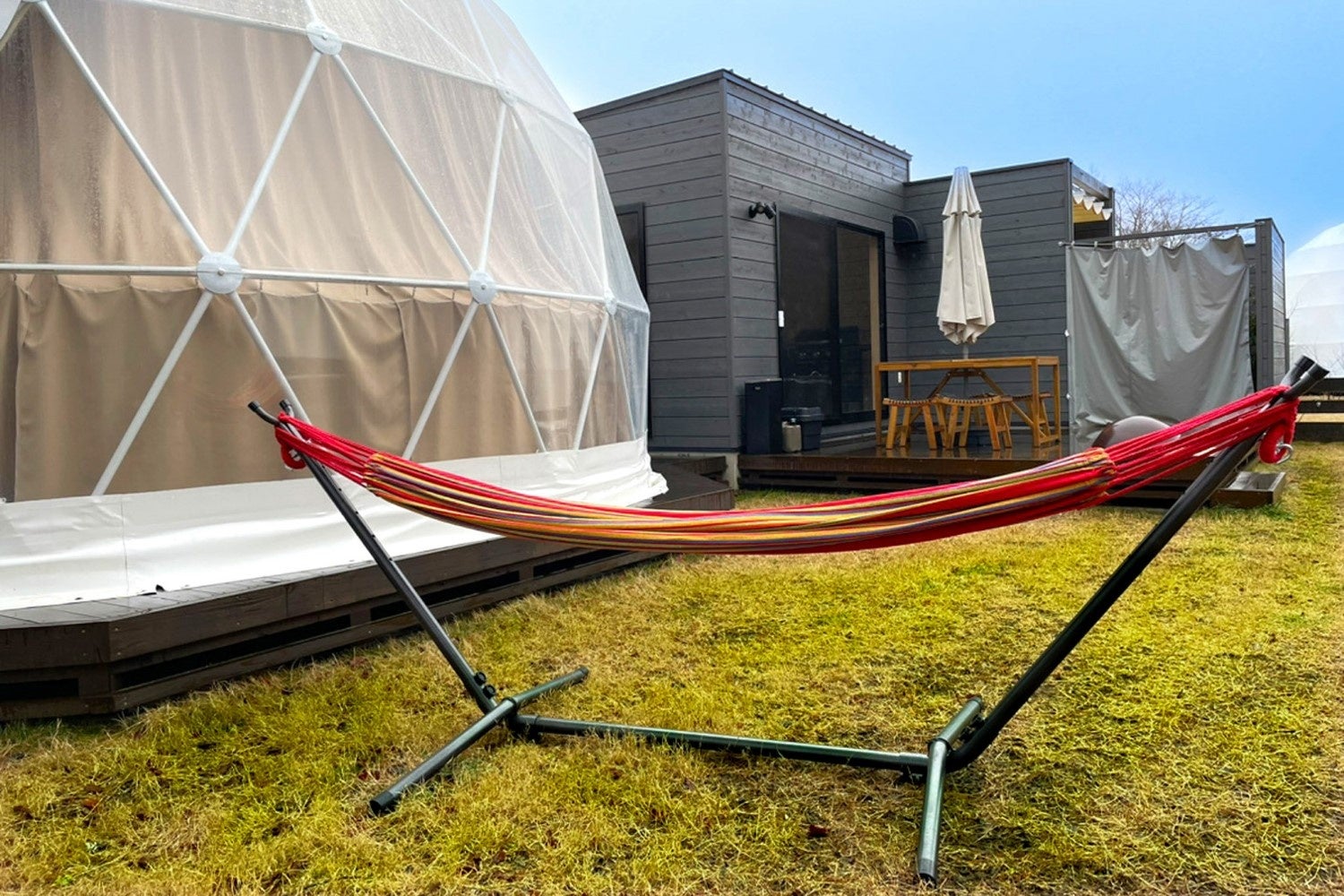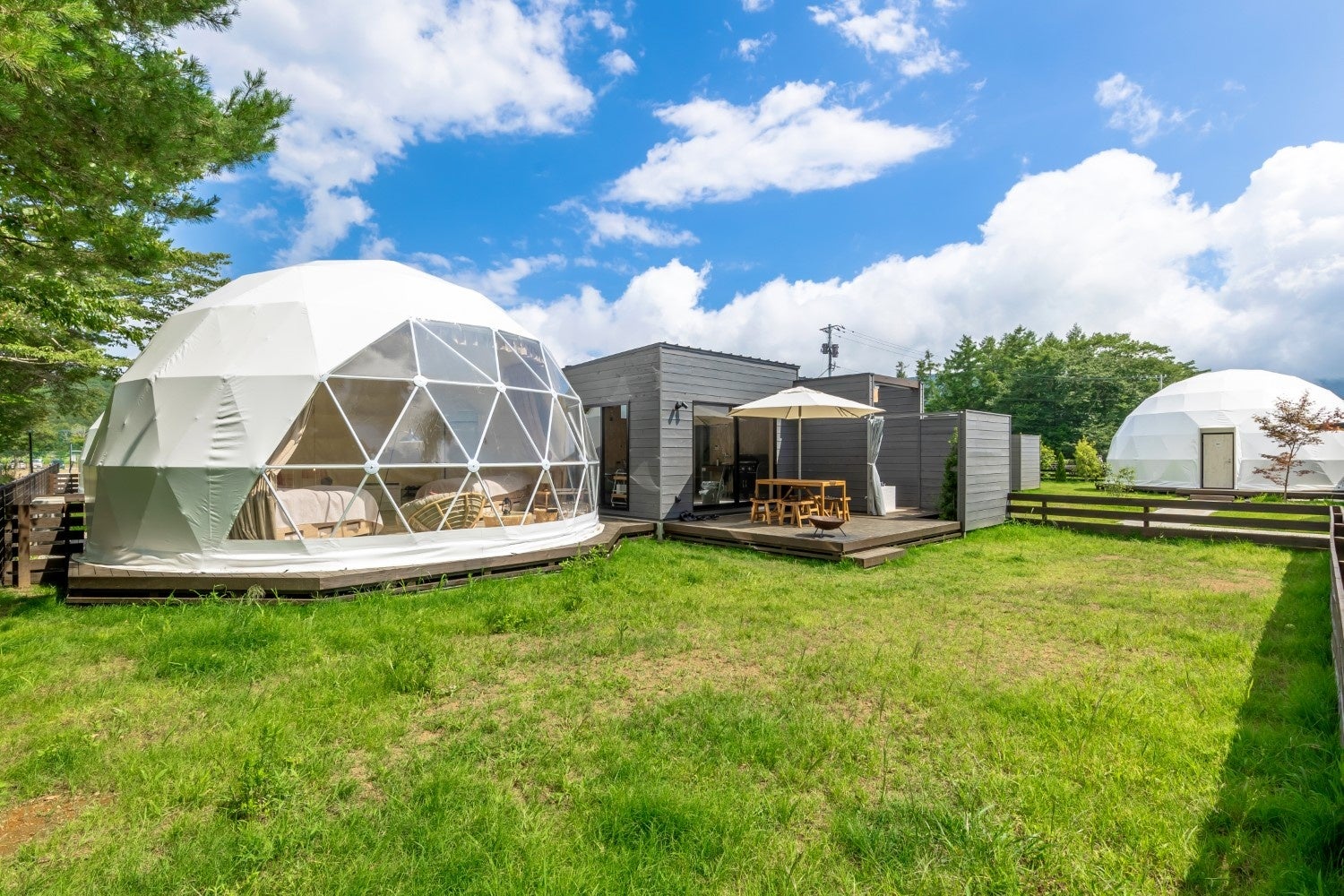 関東圏主要部より約80分の山梨県山中湖エリアに、山梨の“食”を体験するアクティビティを備えた客室温泉付グランピング施設として2023年7月にオープンしました。