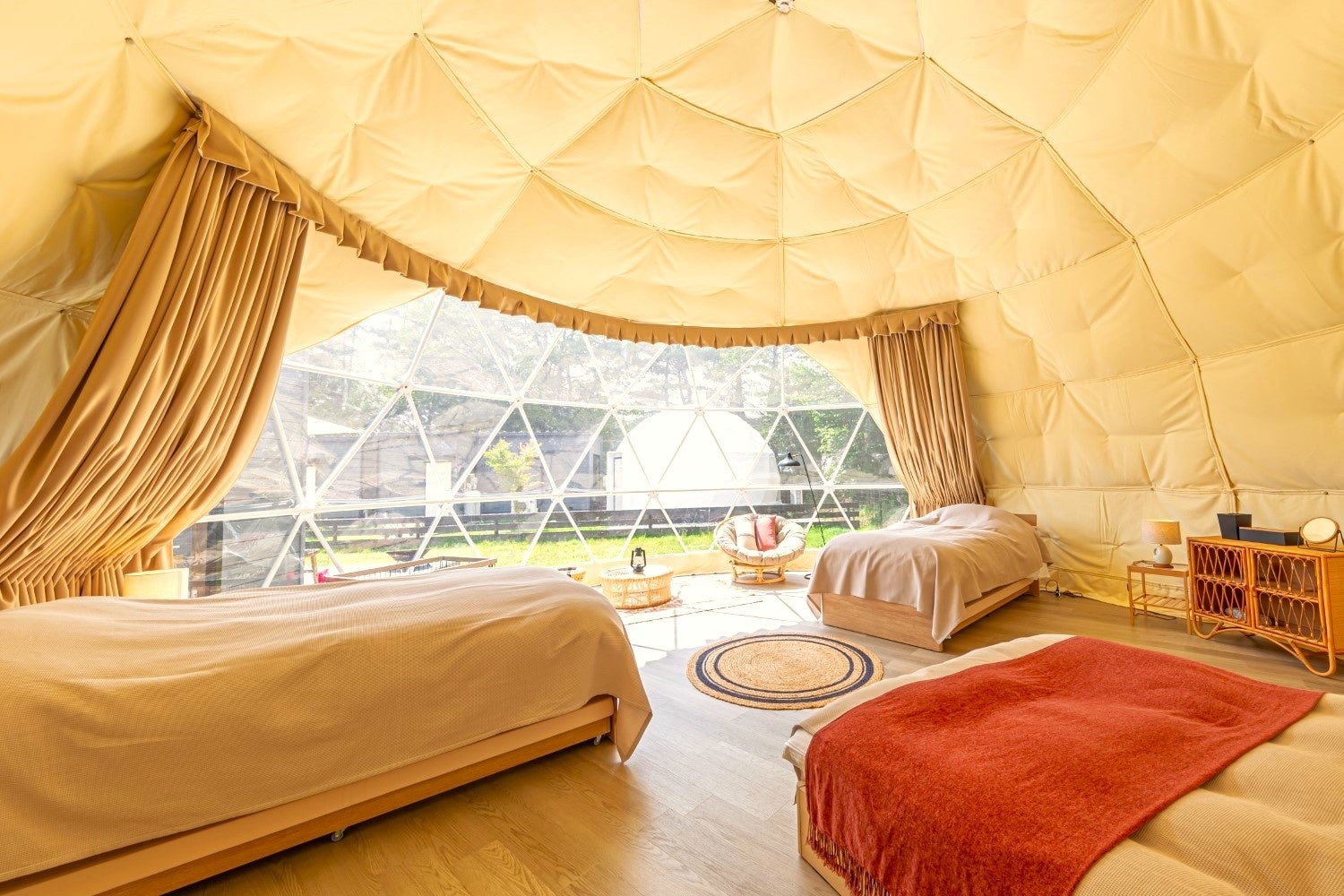 山梨県山中湖エリアの富士山を望む絶景グランピング施設
