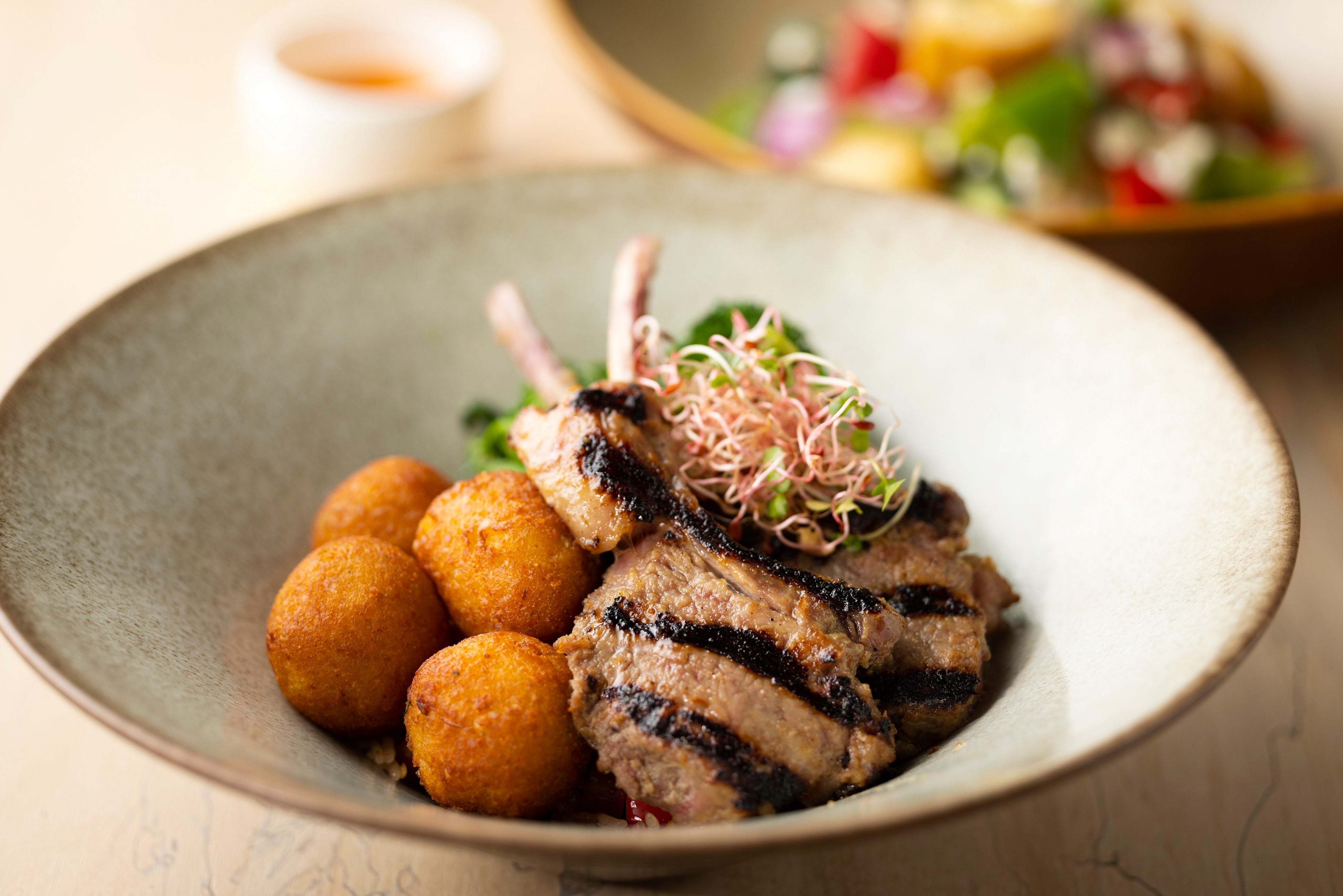 ニューヨーク発祥の白米の代替え食材「カリフラワーライス」や、味噌や麹などの発酵のちからでしっとりやわらかな食感に仕上げたラムチョップ、サーロインステーキなどの低糖質、高タンパクメニューは体型のコントロールしている方におすすめです。