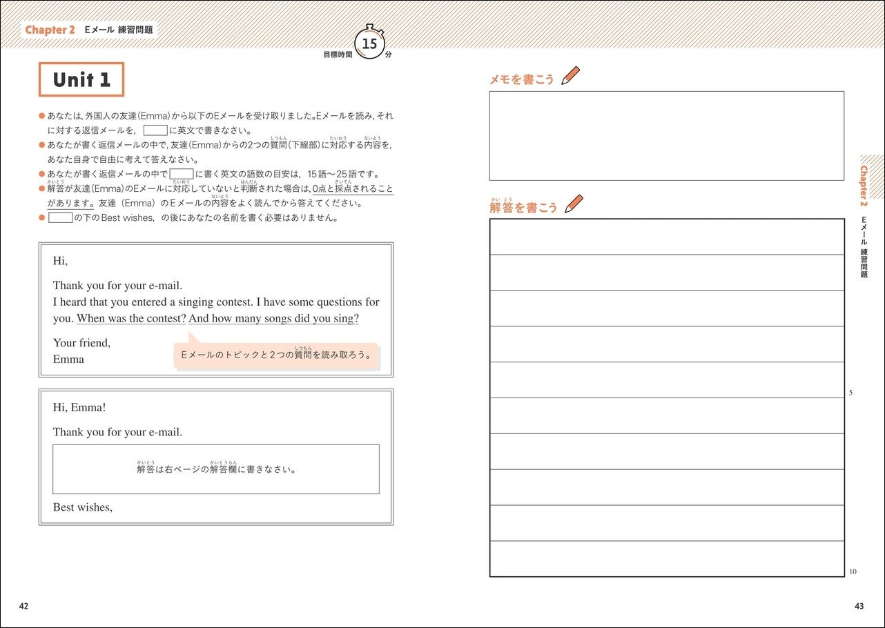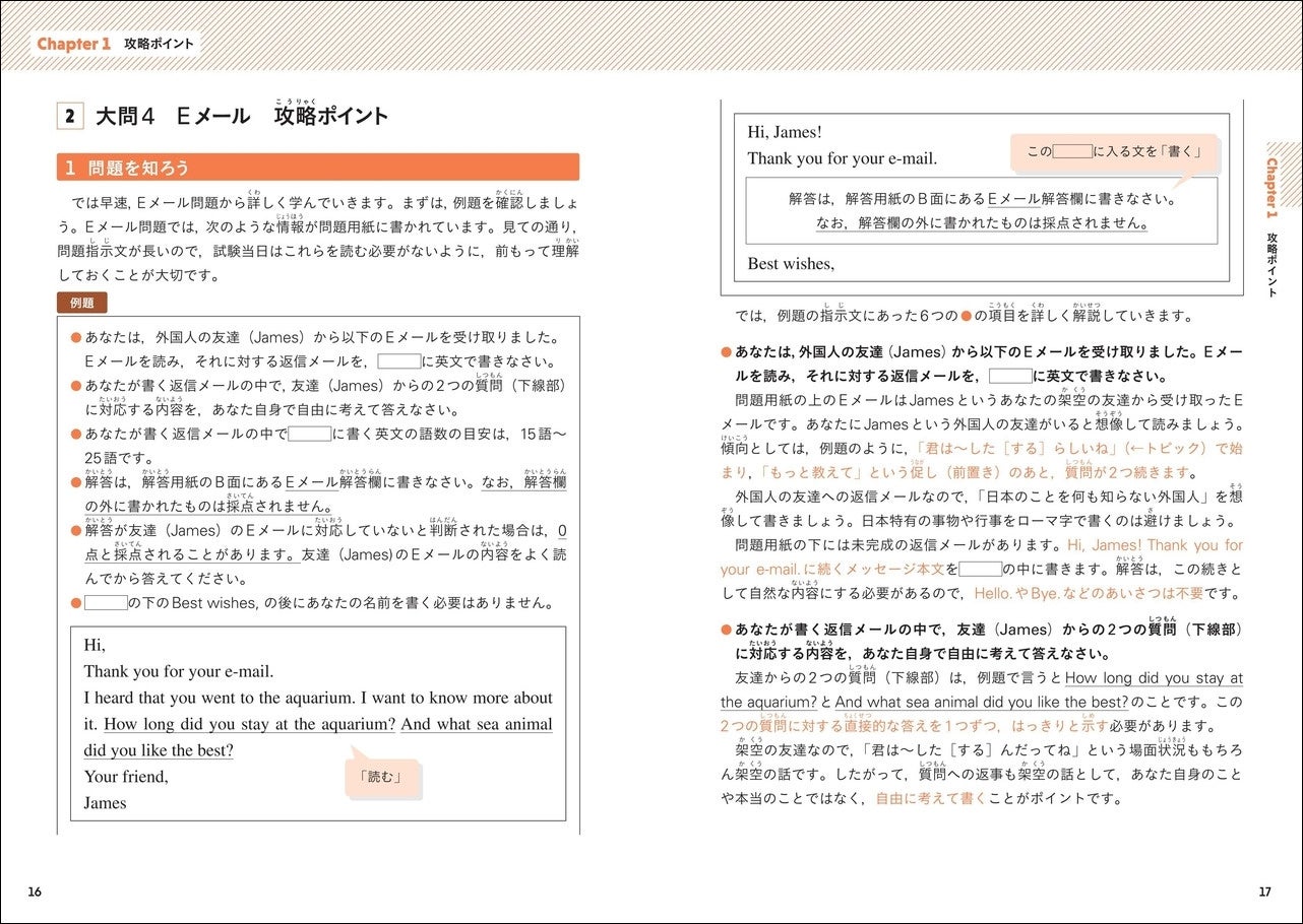 本シリーズは、英検®のライティング問題対策に特化した問題集です。2024年度から導入されたライティングの新形式(Eメール問題)に対応しました。
