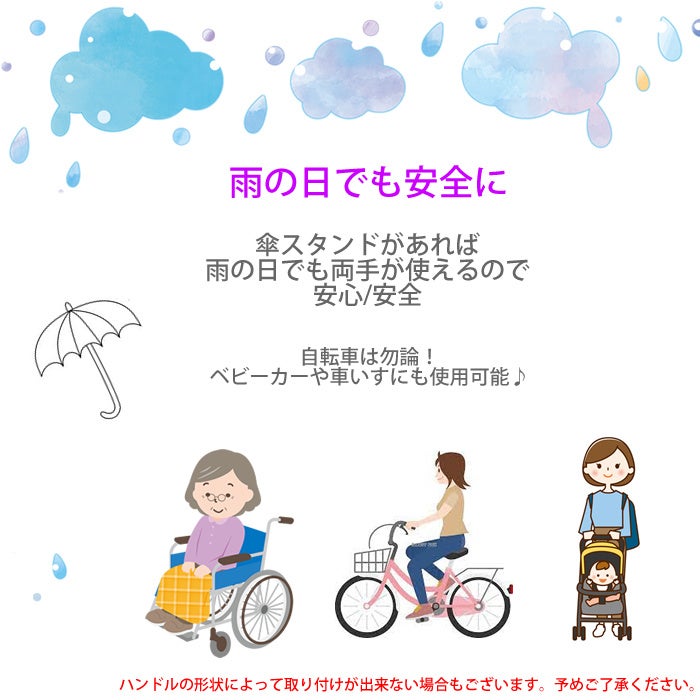 手を使わずに傘がさせる♪「自転車傘スタンド」が販売開始します。