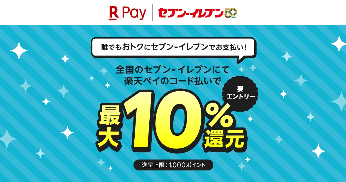 「楽天ペイ」、「誰でもおトクにセブン-イレブンでお支払い!最大10%還元キャンペーン」を実施