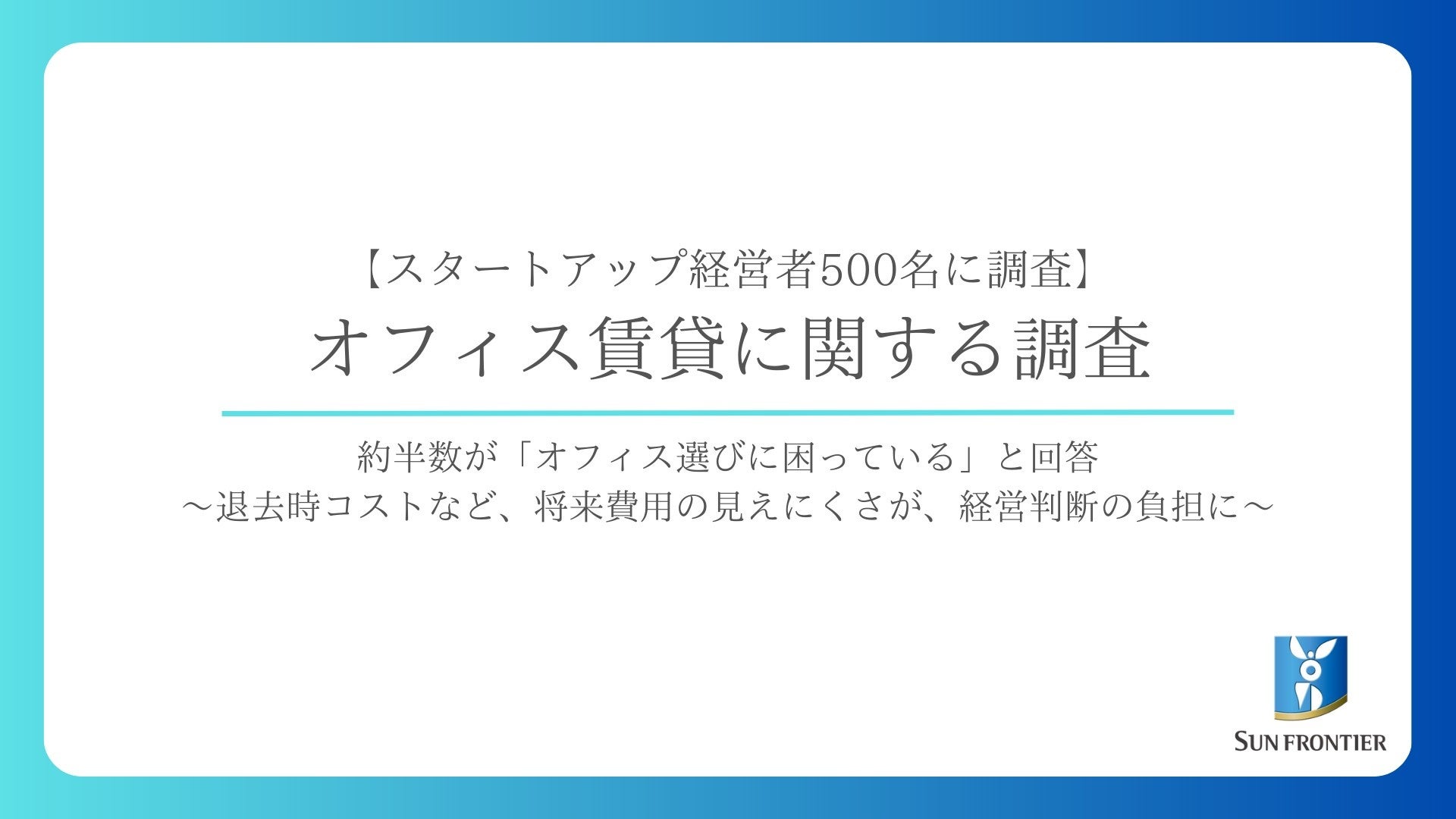 サンフロンティア不動産株式会社(本社:東京都千代田区、代表取締役社長:齋藤 清一、以下「当社」)は、従業員数100名未満の法人に所属する本部長クラス以上の経営層500名を対象に、「オフィス賃貸」に関する調査を実施しました。