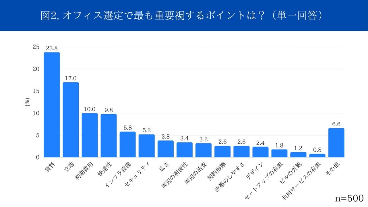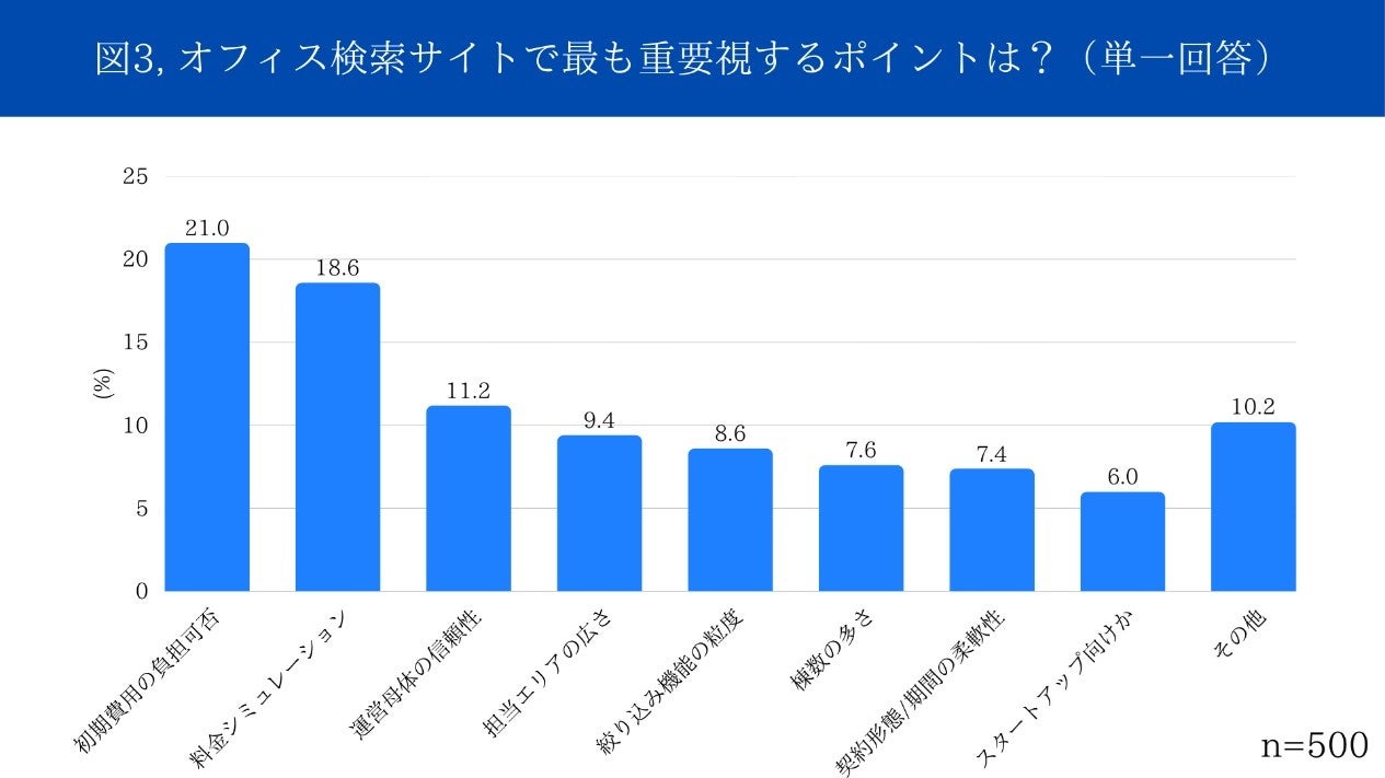 この結果から、スタートアップ経営者を中心に、オフィス検索の段階から費用に関する情報を可視化し、比較・検討したいというニーズが高いことがうかがえます。