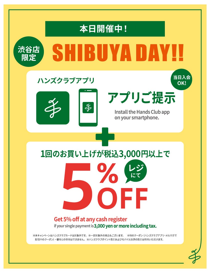 期間中、ハンズクラブアプリをご提示いただき、1回のお買い上げが税込3,000円以上でレジにて5%オフいたします。