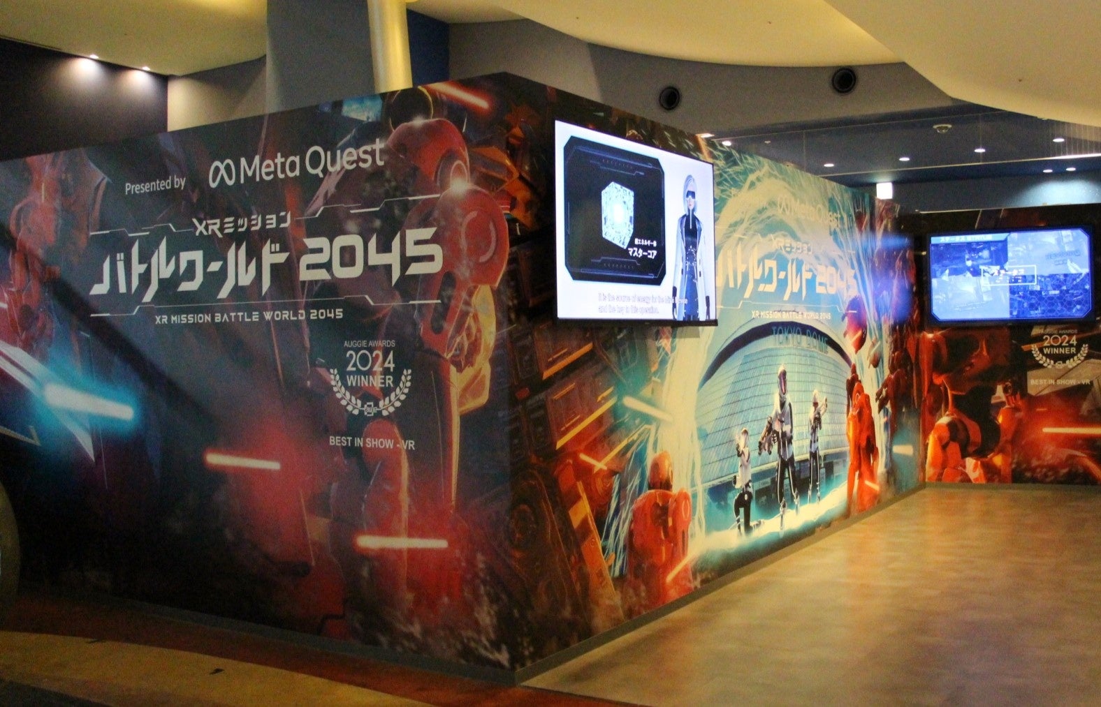 本コンテンツは、当社が企画立案からゲーム開発、監修までのすべてを手がける完全オリジナルのゲームソフトウェアです。2024年11月に、東京ドームシティ アトラクションズ(東京都文京区)にXRシューティングアトラクション「XRミッション バトルワールド2045」を導入し、累計4万人以上のお客様に体験いただきました。また、2024年8月にシンガポールで開催された世界的XRカンファレンス「Augmented World Expo(AWE) Asia 2024」では、ゲーム全体の世界観や3D技術を評価され「Best in VR賞」を受賞するなど、国外からも多くの反響をいただいております。