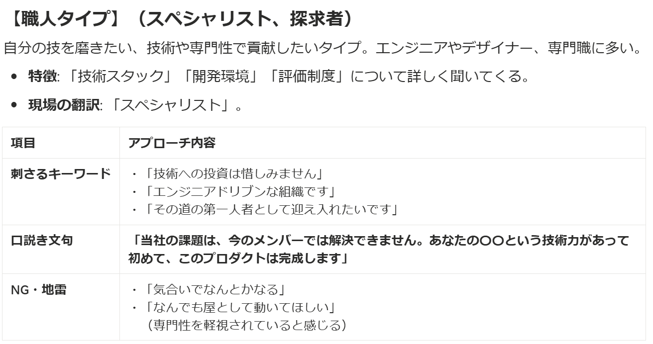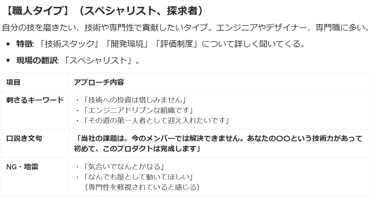 「候補者タイプ別・口説き」パターン表