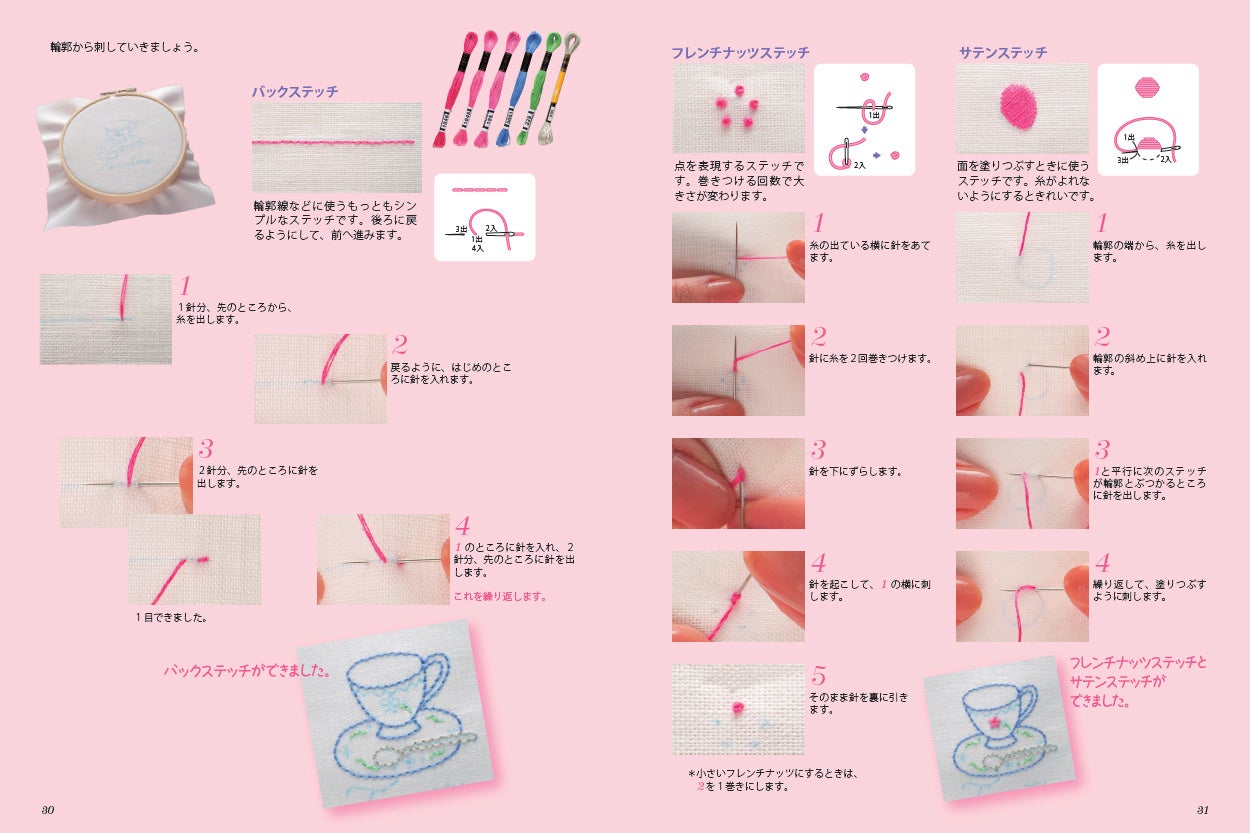 もちろん基礎となるステッチの仕方も写真で1工程ずつ丁寧に解説しています。