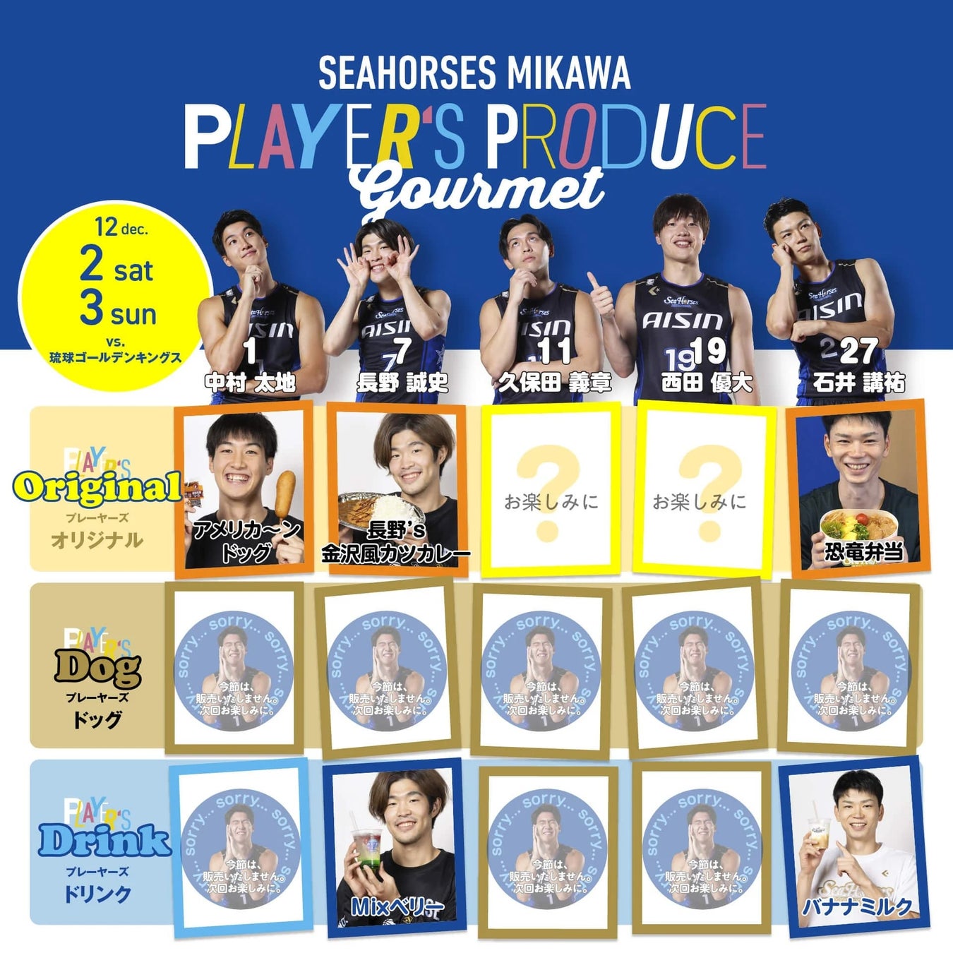 【選手プロデュースグルメ情報】12/2(土),3(日)琉球戦「ブースターDAY」