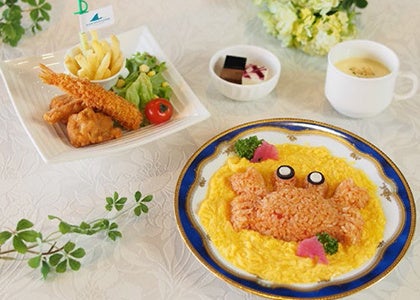 横浜桜木町ワシントンホテル「BAYSIDE」で提供するランチコースは、シロイルカのイラストが描かれたスープ、可愛いシーパラフレンズクッキー(注)のデザートプレートなど、横浜・八景島シーパラダイスの仲間たちを見つけて楽しい、食べて美味しいランチコースです。可愛いカニの「お子様ランチ」1,000円(税込み)や横浜・八景島シーパラダイスが誇る4つの水族館が楽しめるアクアリゾーツパス付きランチプランも好評発売中です。