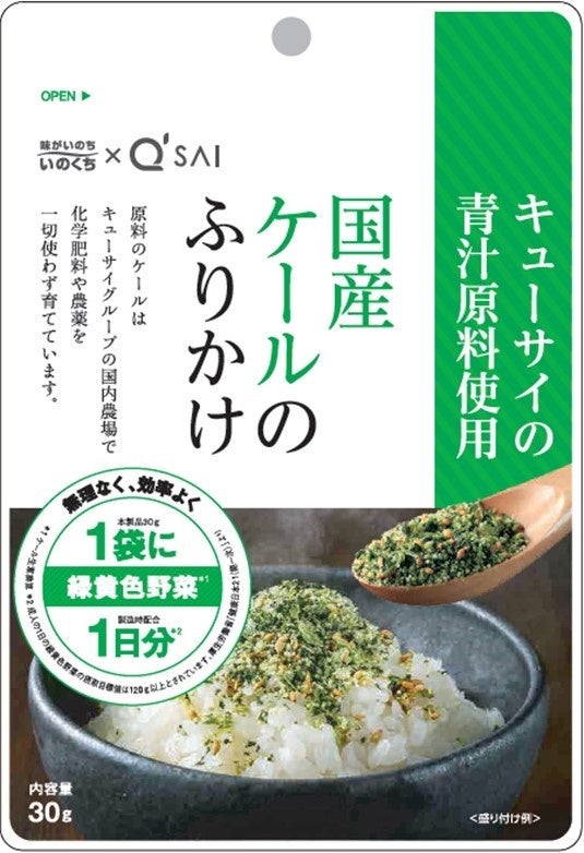 毎日の食卓に、ササっとスーパー緑黄色野菜「ケール」を! 2月5日より「キューサイの青汁原料使用 国産ケールのふりかけ」を販売 “味がいのち”の井口食品とケール青汁のキューサイがコラボ