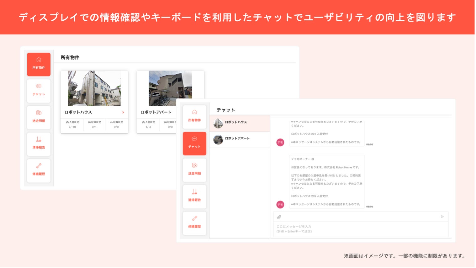不動産経営におけるオーナー様の動線はすでにアプリに集約されておりますが、WEB版のリリースにより、パソコンの大画面を使用しての情報確認や、キーボードを利用したチャット入力などが可能になります。アプリだけでは提供できない操作性や視認性をご提供することが可能になり、ユーザビリティの向上を図っています。