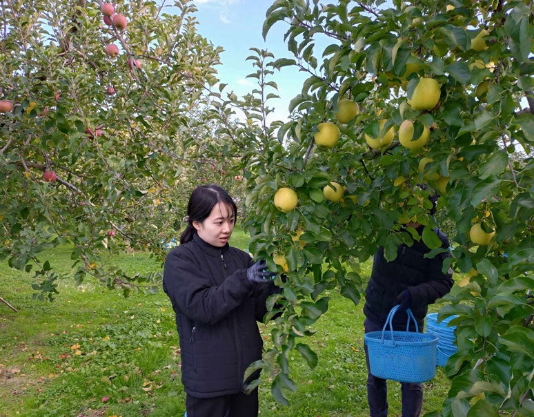 2023年5月より始動したプロジェクトに関し、これまでも看板商品の青森リンゴ「こみつ」や山梨県のシャインマスカットの収穫サポートなどを行ってきました。