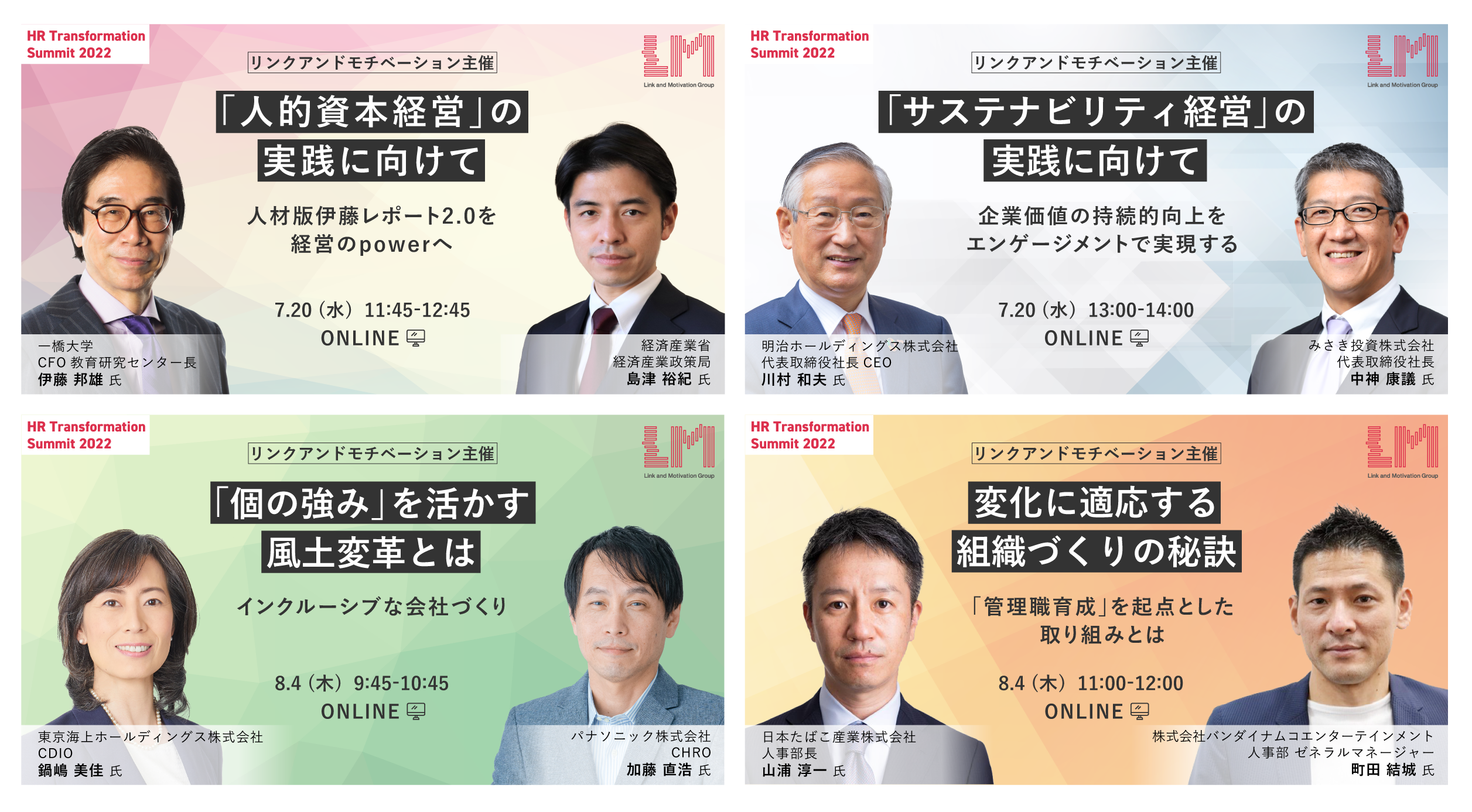 株式会社リンクアンドモチベーション(本社:東京都中央区、代表:小笹芳央、証券コード:2170、以下当社)は2022年7月20日(水)、8月4日(木)にて、人事向けカンファレンス「HR Transformation Summit 2022」を完全オンラインで開催いたします。
