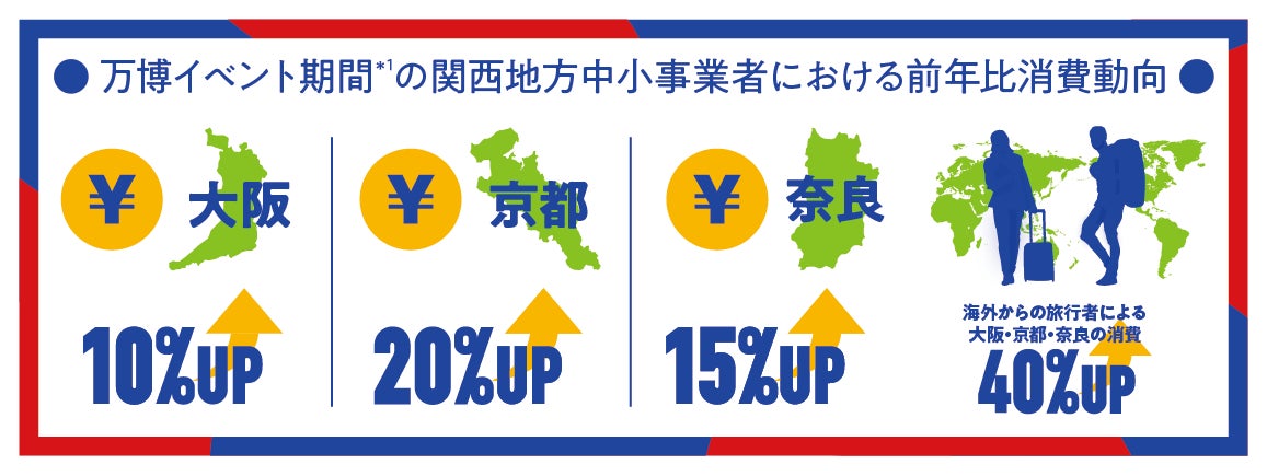 万博開催期間中、大阪府の消費全体において、前年比で約13%増加*1し、国内利用者による消費は13%*1の増加、海外からの旅行者*2による消費は14%*1の増加が見られました。