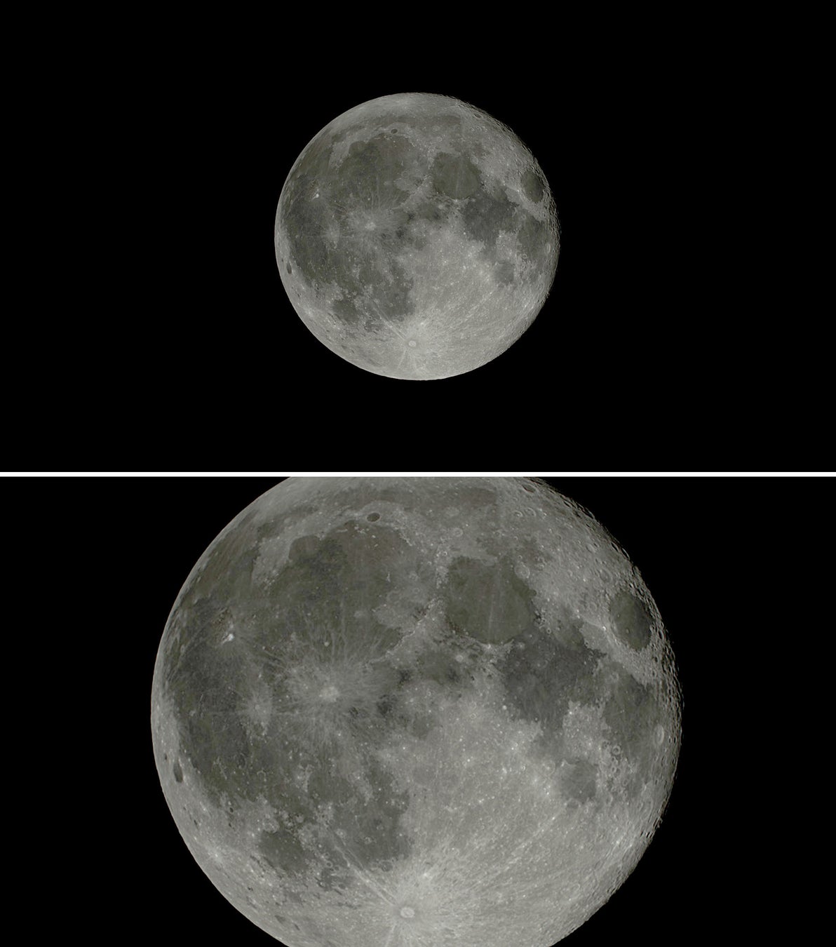 画像上:口径80mm焦点距離800mmのマクストフカセグレン式望遠鏡に、レデューサー0.5×を装着したCMOSカメラ(センサーサイズ1/1.2型)を取り付けて撮影した月