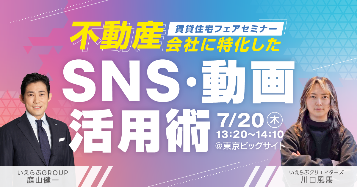 【いえらぶ】7/20(木)賃貸住宅フェアにて「不動産会社に特化したSNS・動画活用術」をテーマにセミナーを実施