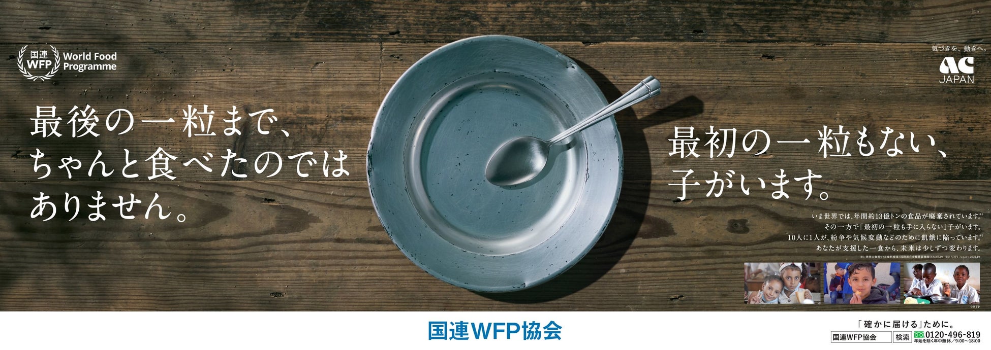 認定NPO法人国連WFP協会(横浜市)は、7月1日(金)より公益社団法人ACジャパン(以下、ACジャパン)の2022年度公共広告支援キャンペーンによる広告を開始いたします。2022年7月より1年間、テレビ・ラジオ・新聞・雑誌など全国の各メディアで放送・掲載予定です。